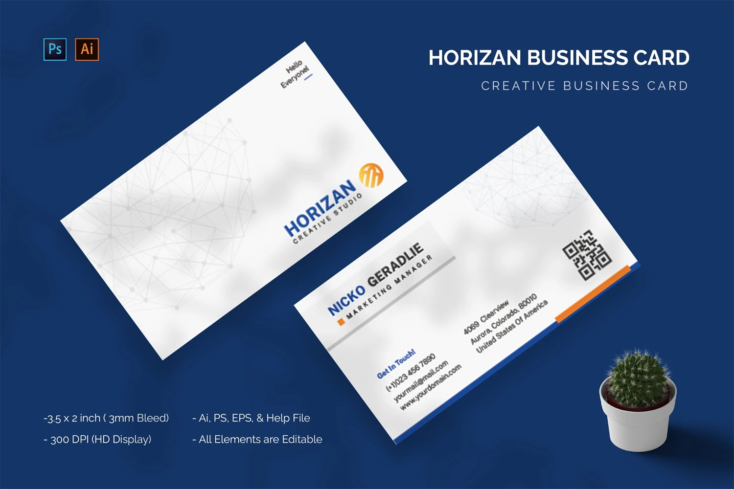 This Horizan - Business Card make your business cards look professional. You can use this business card for, identity, company business cards, Corporate Business, Creative, Blogs, Photographers, Artists, Designers, etc.
