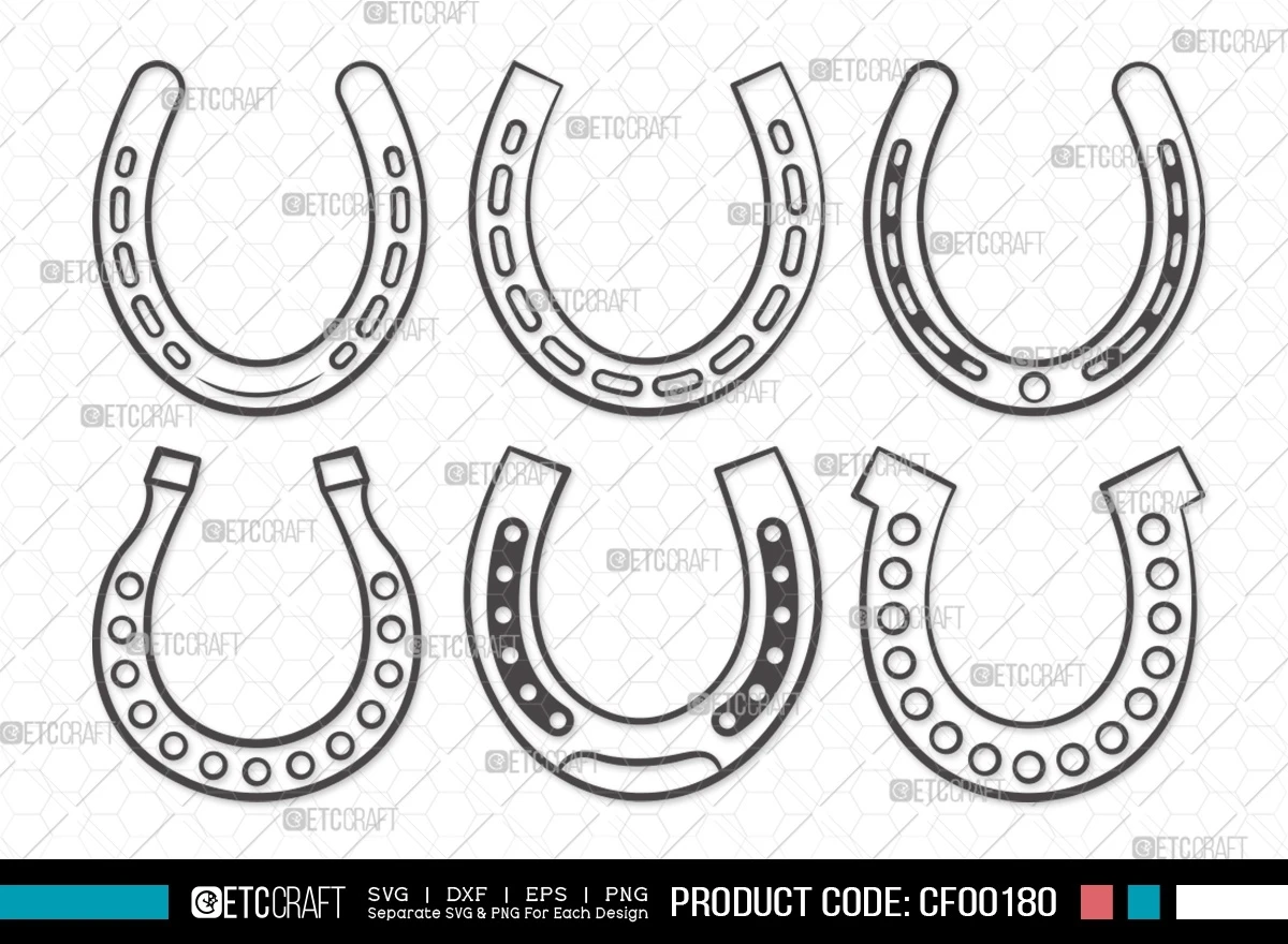 Explore the beauty of equestrian art with our Horseshoe Outline Triumph Horseshoe Equestrian SVG Cut File Bundle. This digital collection offers meticulously designed SVG, DXF, EPS, and PNG files, presenting a variety of horseshoe outline designs. Whether you're a horse enthusiast, an equestrian artist, or simply looking to add a symbol of luck to your designs, this bundle is the perfect choice.