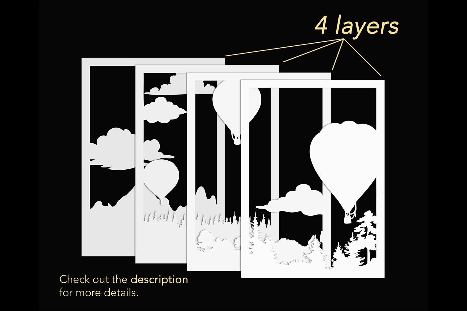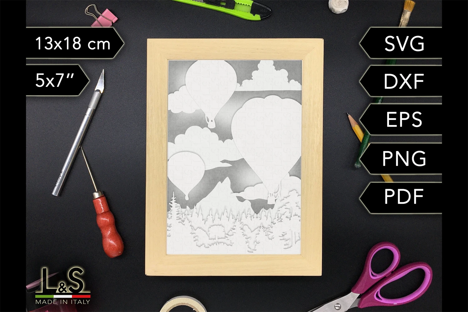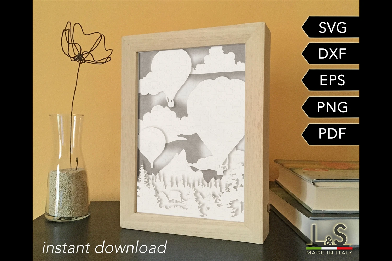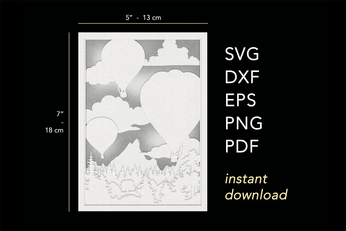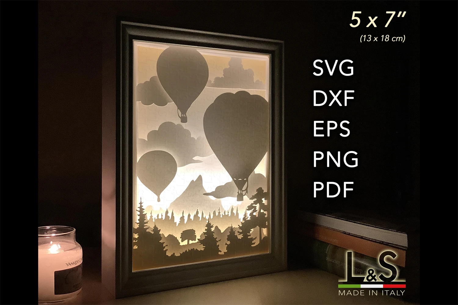 Download this 5x7'' Hot Air Balloon Shadow Box SVG File and create a unique paper cut Light Box in just a few minutes!