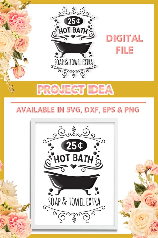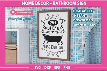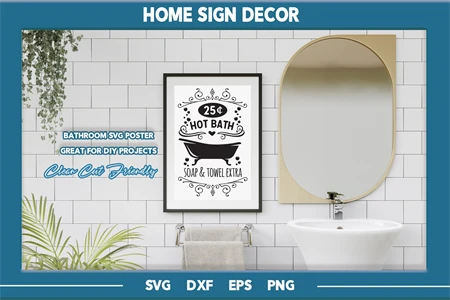 The main objective when creating this bathroom sign has been to have a cute wall art poster for you to decorate your home. You can use this cut file as a printable, wood sign, canvas, and poster. You can also print it as a vinyl decal and stick it straight to your bathroom wall.