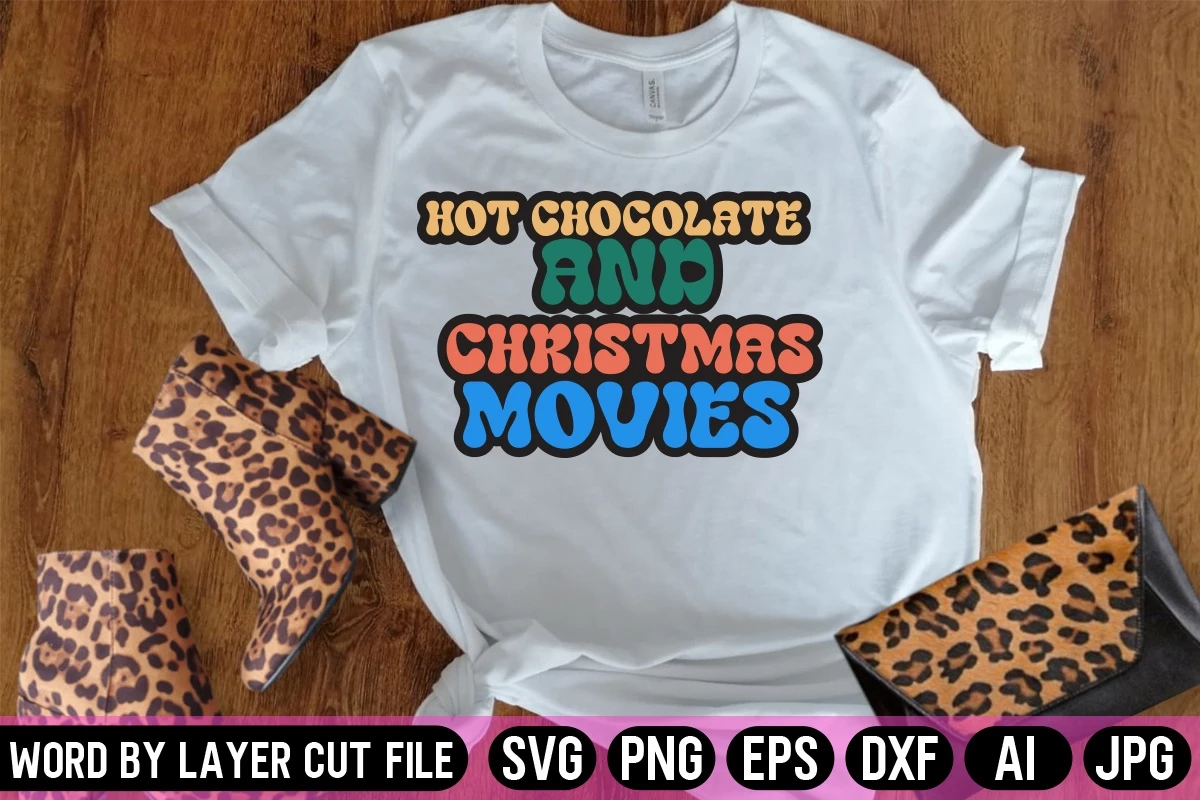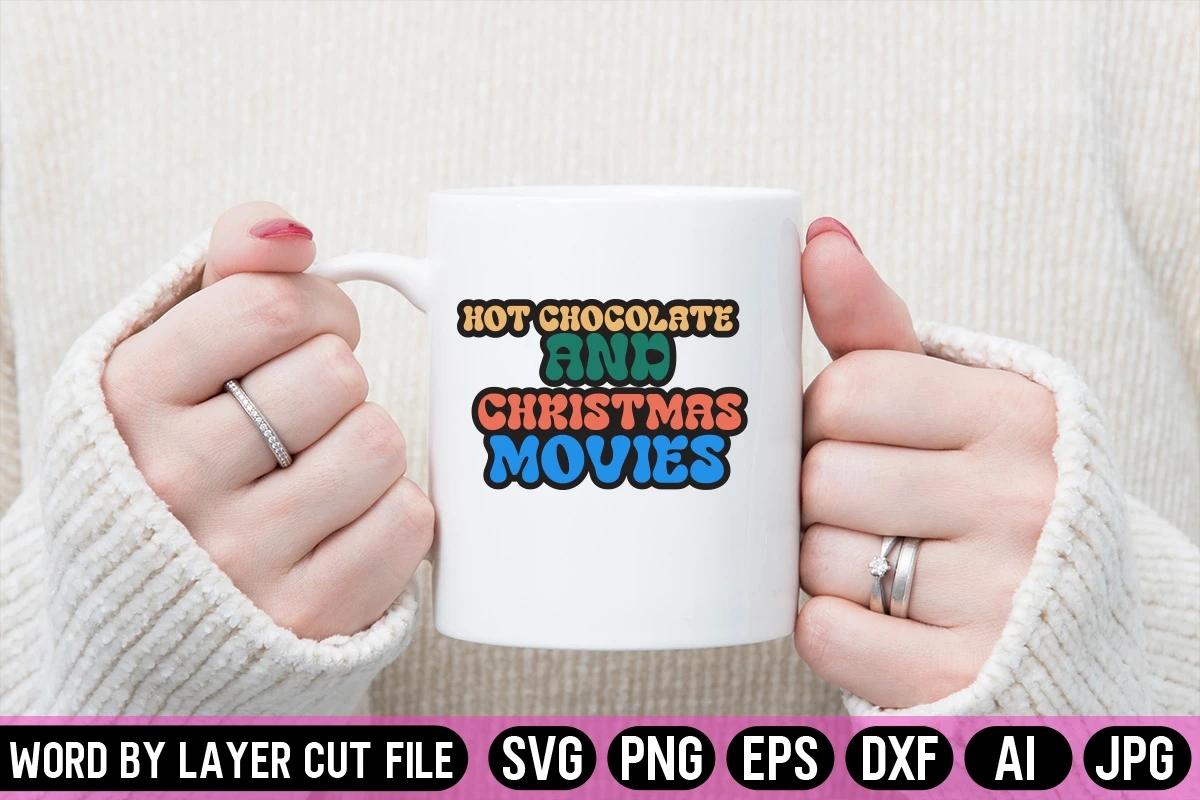 Hot Chocolate And Christmas Movies Retro Svg Design