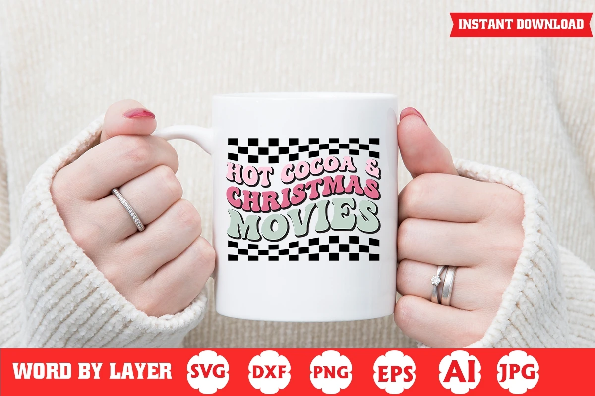 Hot Cocoa & Christmas Movies Retro Christmas SVG Design