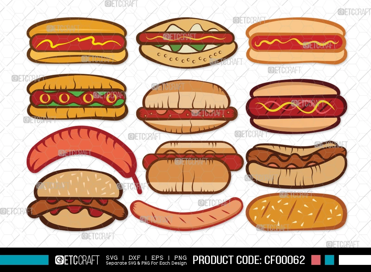 Indulge in the all-American classic with our "Hot Dog Clipart BBQ Fast Food Sausage" SVG cut file. This delightful design brings the joy of hot dogs to your crafting endeavors.