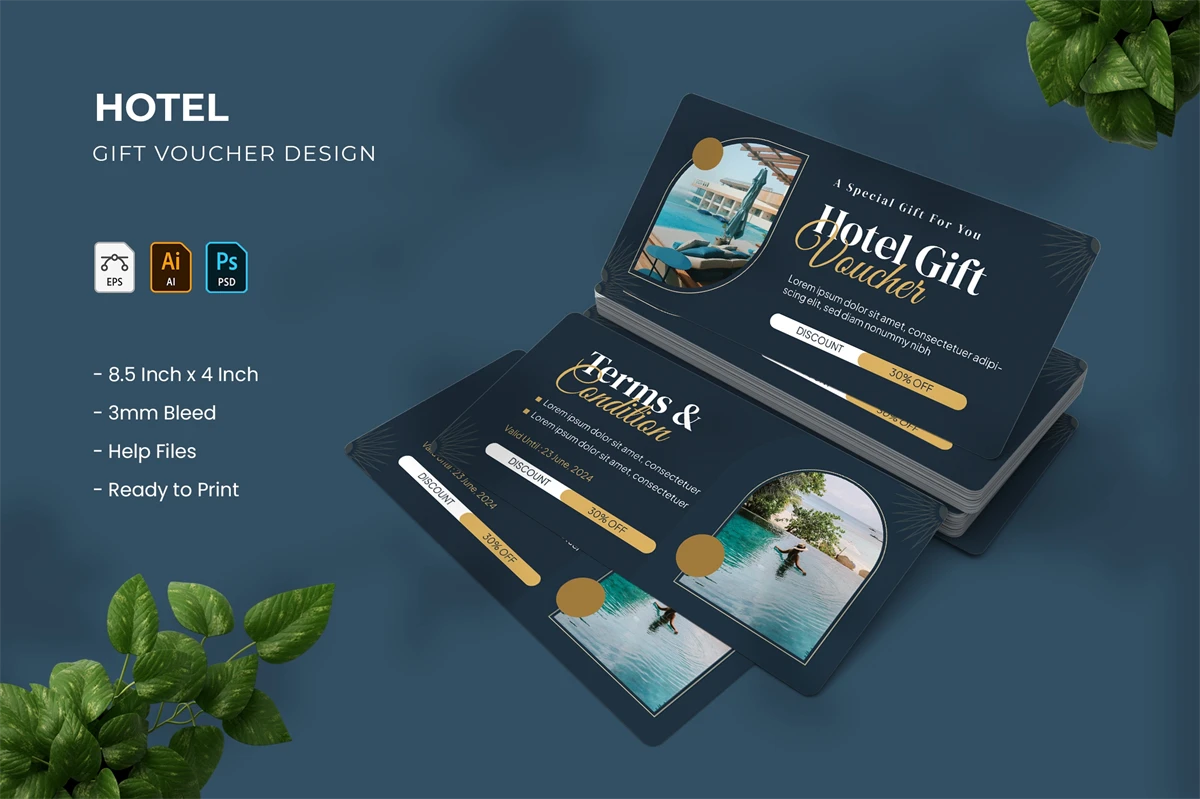 With this Gift Voucher Card, you can get the word out about your salon, spa, cosmetics store, health food store, pharmacy, hospital, boutique, fashion store, shopping mall, and more. This Gift Voucher Template is fully editable and customizable. You can add your product or service image and details of your offering very easily and quickly. Also, you have the option of changing colors and backgrounds. This gift template design will save you both time and money.
