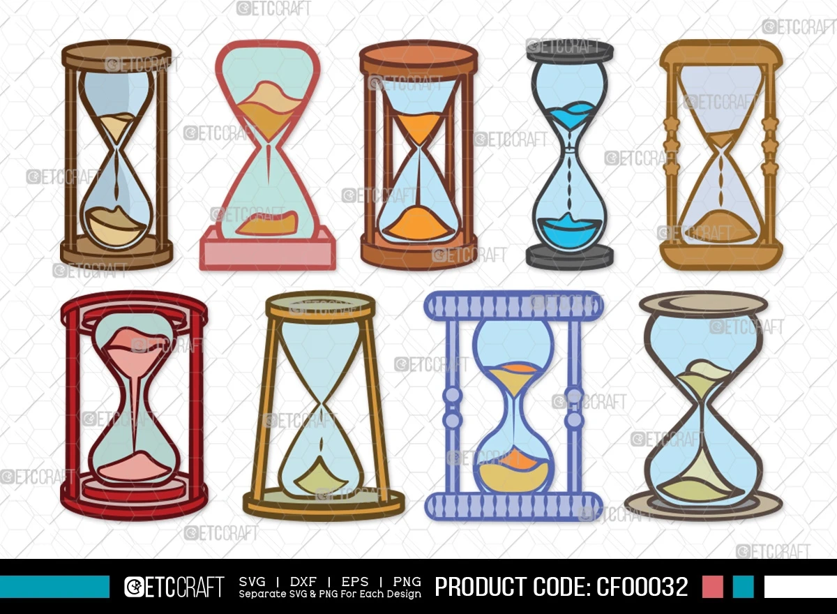 Introducing our Hourglass Clipart Sandglass Clock Timer SVG Cut File Bundle – a digital treasure that embodies the essence of time, encapsulating grace and elegance in your creative projects.