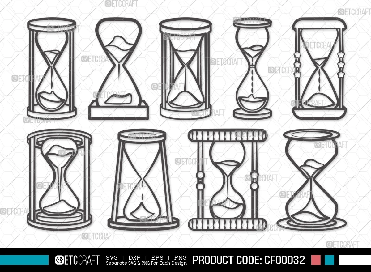 Discover our Hourglass Outline Sandglass Clock Timer SVG Cut File Bundle – a digital collection that encapsulates the elegance of time, empowering you to infuse creativity and meaning into your projects.