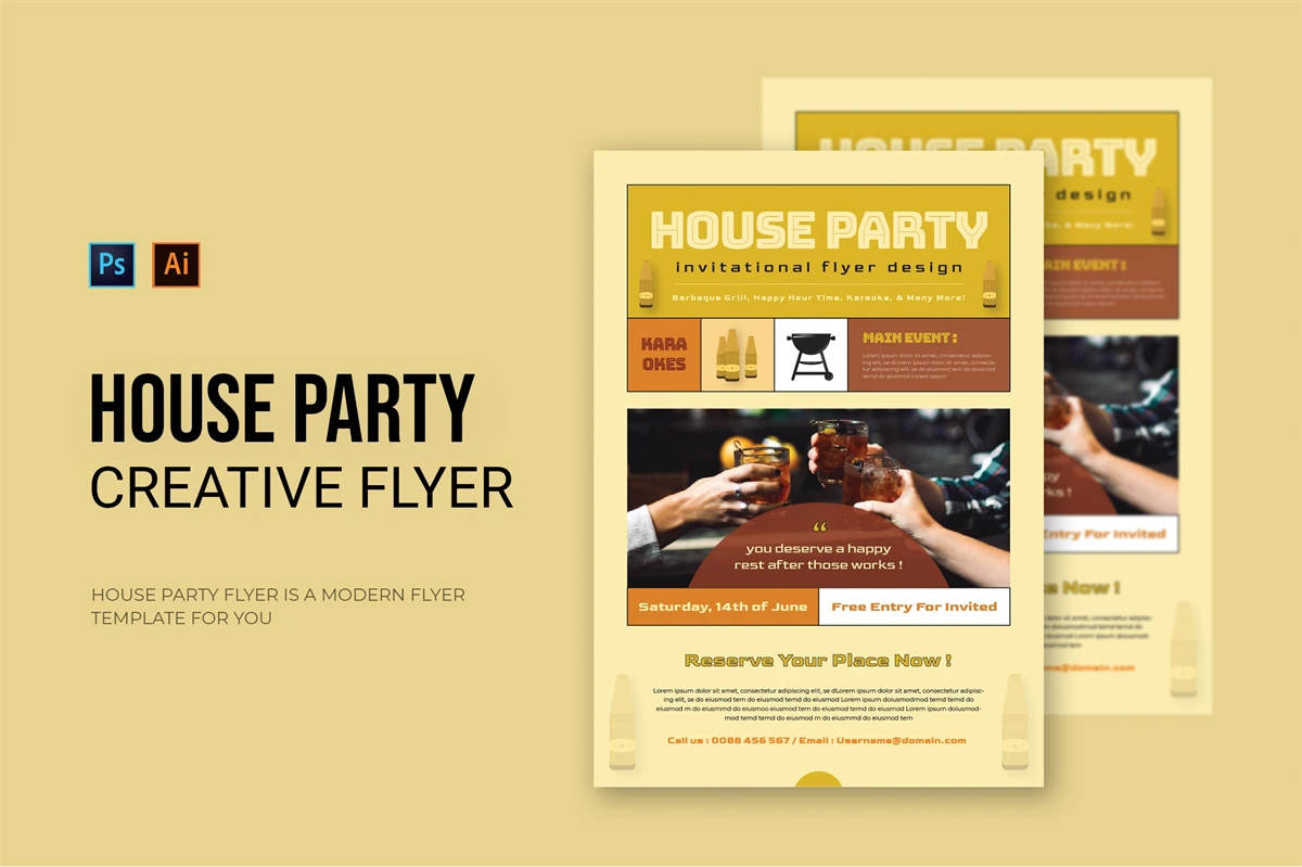 House Party - Flyer. This Flyer template is designed for your company's business needs. very clean and elegant, and also easily edited and adjusted to your liking