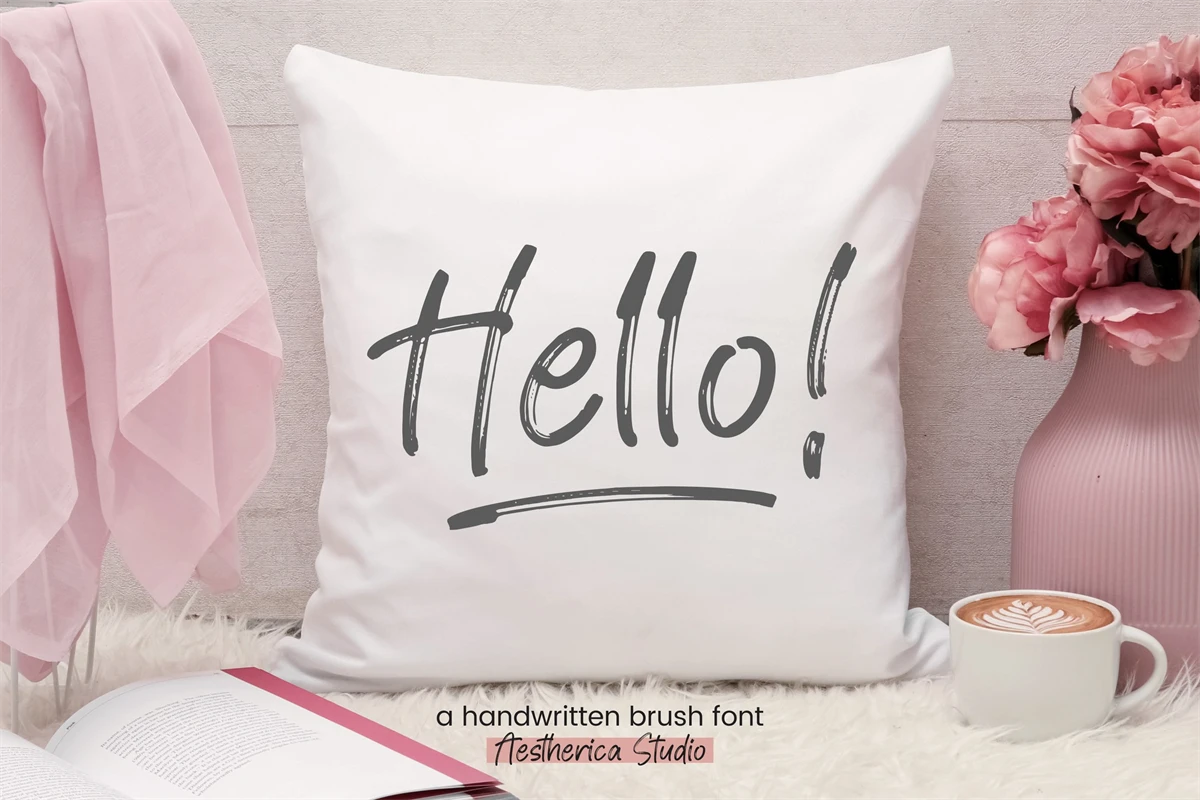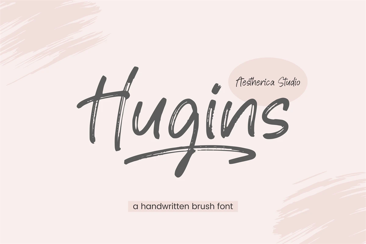 Introducing Hugins Handwritten brush font with a Strong charm with quick dry strokes and a signature style.