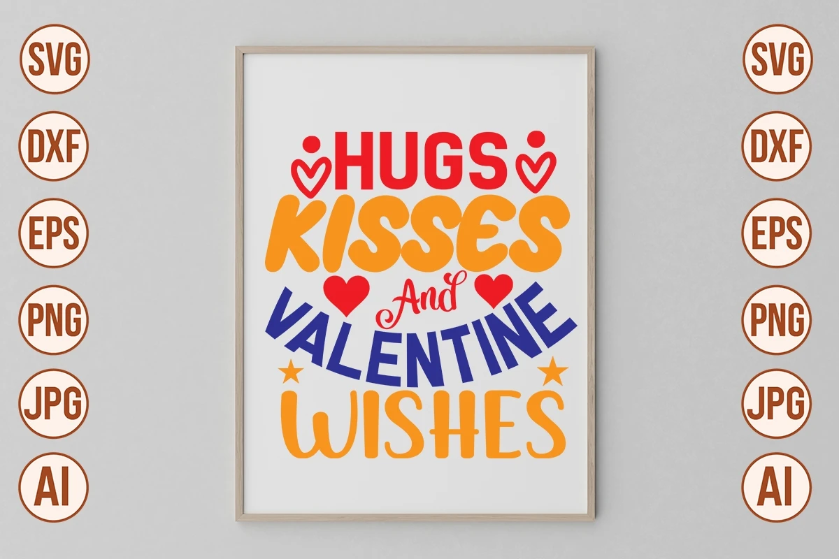 Hugs Kisses And Valentine Wishes SVG Cut File