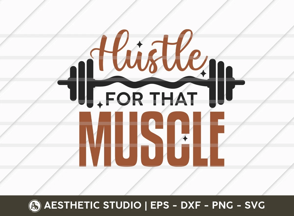 Get motivated and hustle for your muscle with our "Hustle For That Muscle" SVG design. This energetic and empowering design is perfect for creating gym apparel, workout gear, and accessories that drive you to push your limits and achieve those fitness goals.