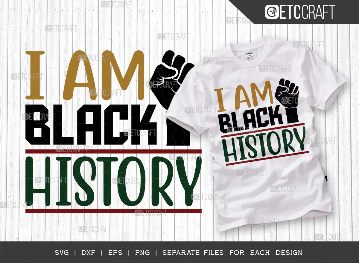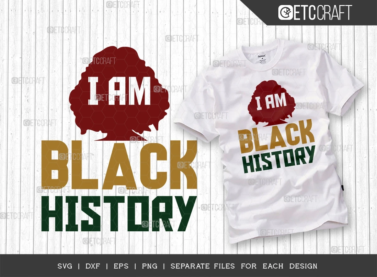 The "I Am Black History SVG Bundle" is more than just a collection of designs it's a celebration of culture, a symbol of empowerment, and an opportunity to make a positive impact. Reveal your creativity and share the summary of Black history through striking typography t-shirt designs and various other captivating products.