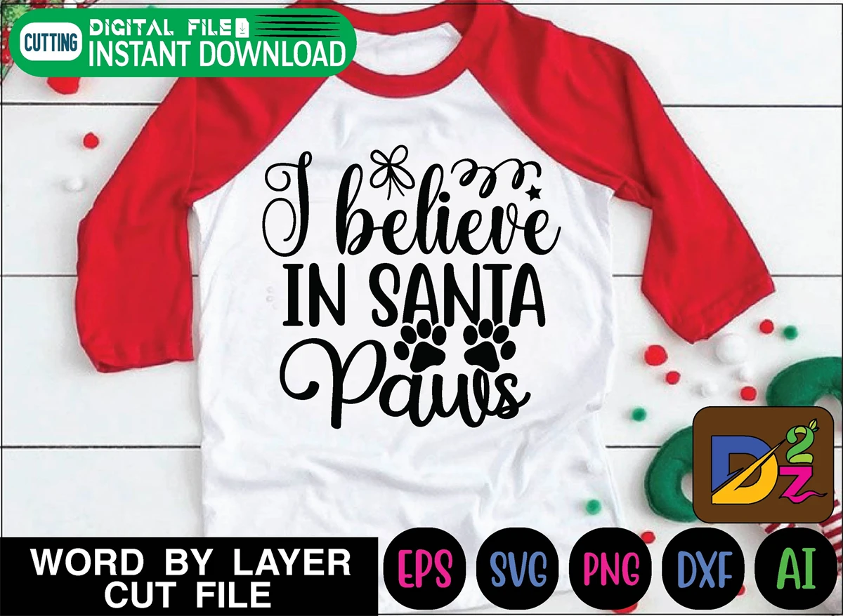 I believe in Santa paws t shirt design This is an instant download cutting file compatible with many different cutting software/machines like cricut Silhouette