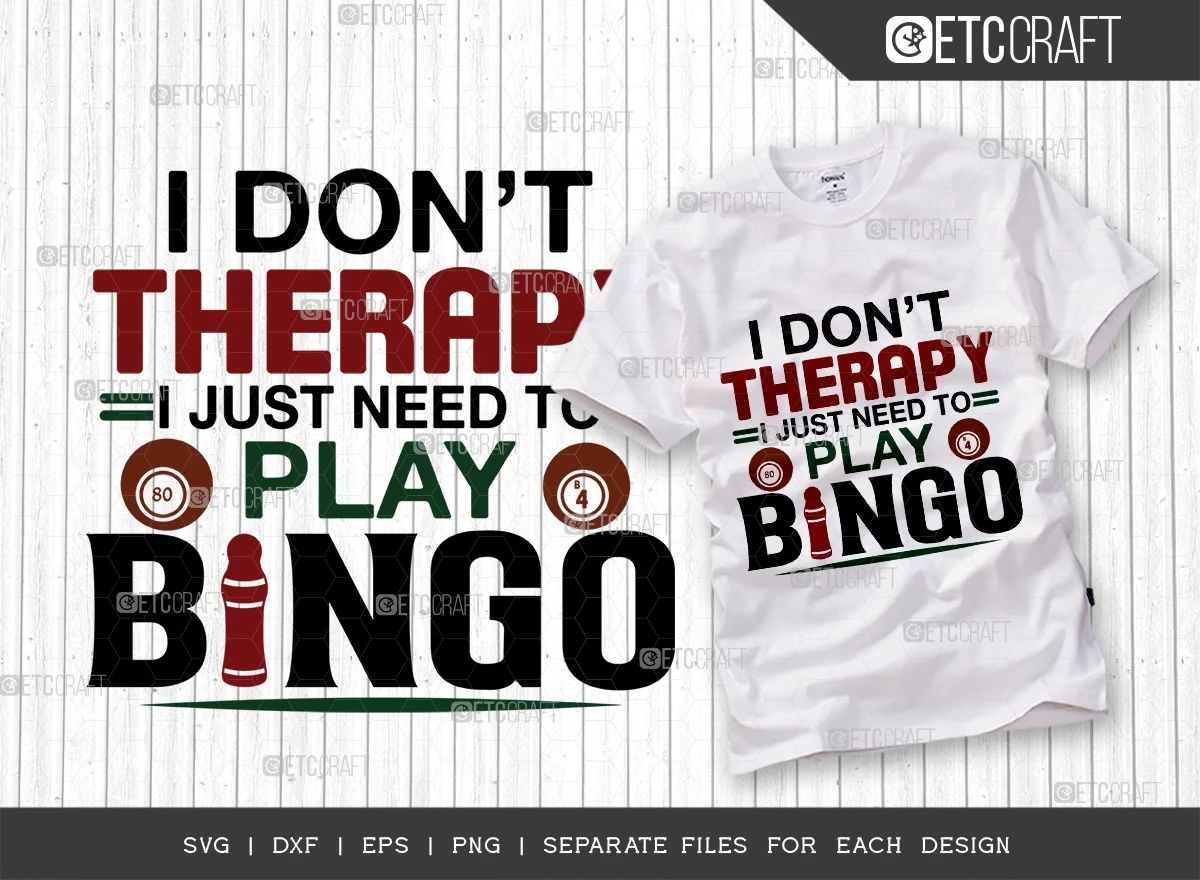 Or "I Don't Therapy, I Just Need To Play Bingo SVG Bundle" is the ultimate choice for bingo enthusiasts seeking an extraordinary and versatile design. Stand out, express yourself, and enjoy the creative process with this unique bundle that promises top-quality SVG files, easy usability, and a plethora of creative opportunities. Get your hands on this amazing bundle today and embrace your love for bingo in style!