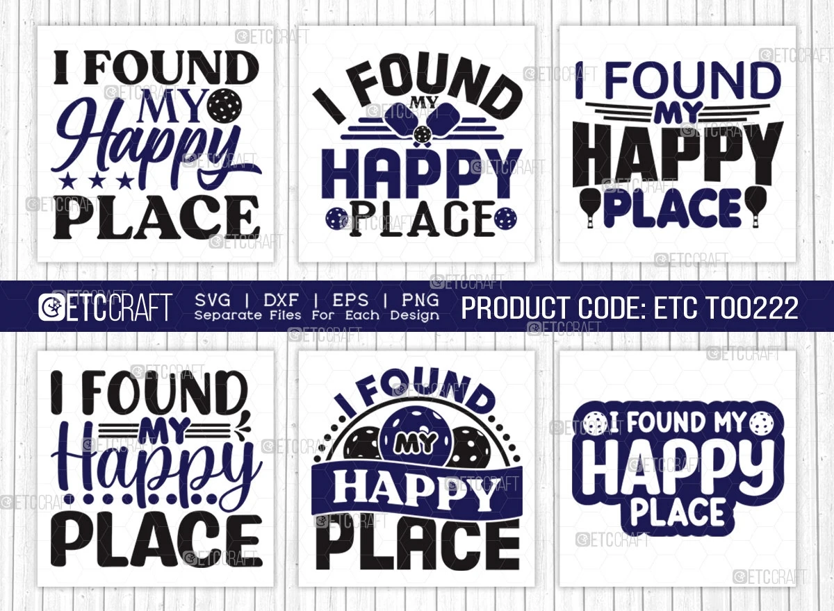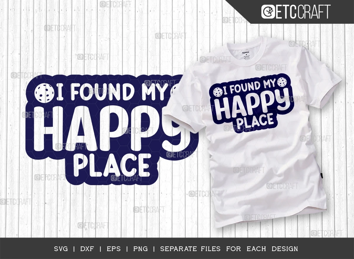 The "I Found My Happy Place" SVG Bundle is a one-of-a-kind design created specifically for pickleball enthusiasts, ensuring that your t-shirt or any other product featuring this design will stand out from the crowd.