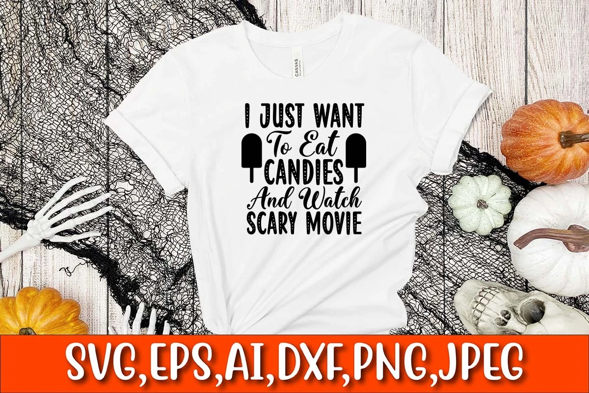 I Just Want To Eat Candies And Watch Scary Movie SVG Design