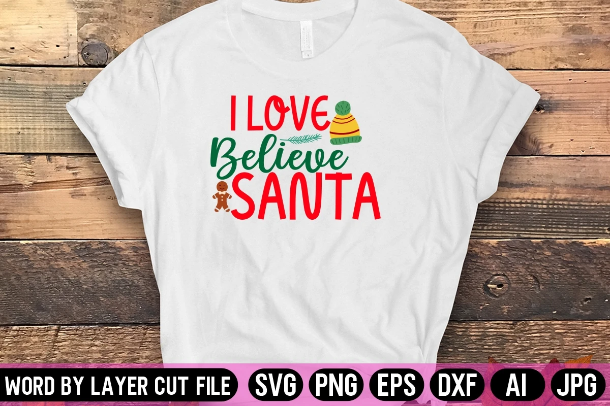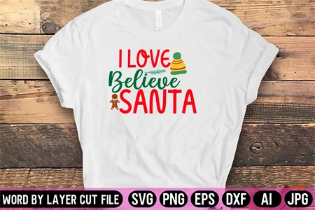 I Love Believe Santa Svg Design