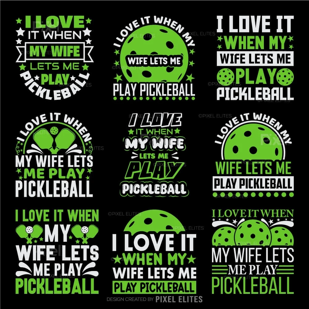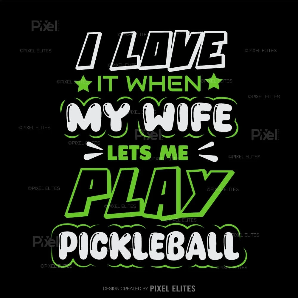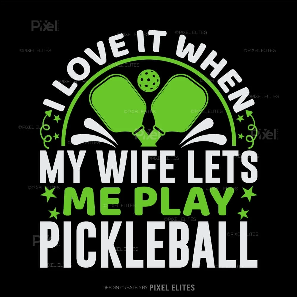 Show your pickleball passion and a little humor with the I Love It When My Wife Lets Me Play - Pickleball SVG Cut File. This fun and relatable design is perfect for pickleball players who appreciate the support of their loved ones. Ideal for customizing t-shirts, accessories, and gifts, its a great way to celebrate your love for the game and the special bond with your spouse.