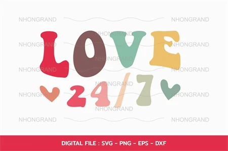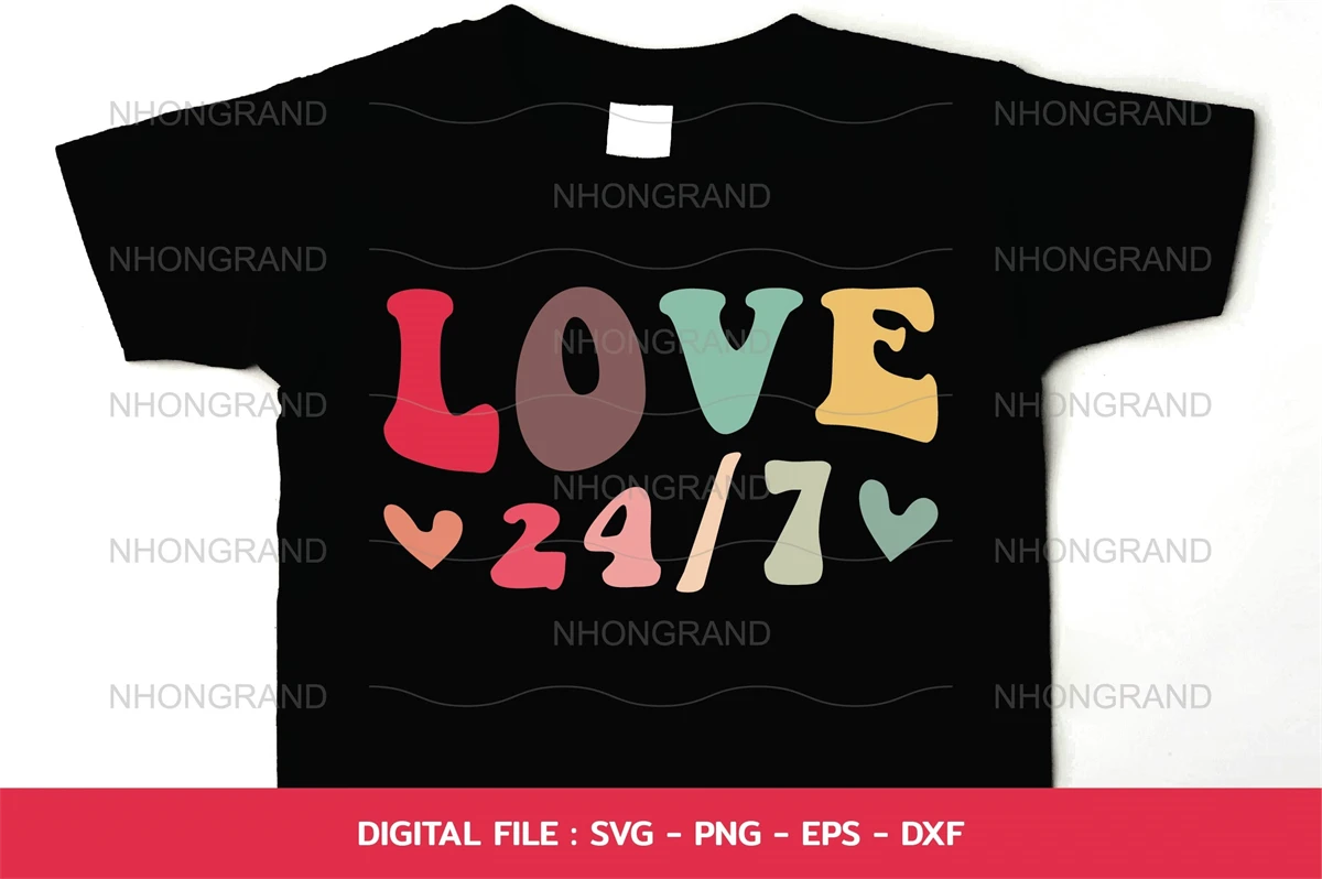 I love you all the time seven days twenty four hours groovy cute lover gift, t-shirt, Cricut Files, svg, png, eps, dxf, Instant Download