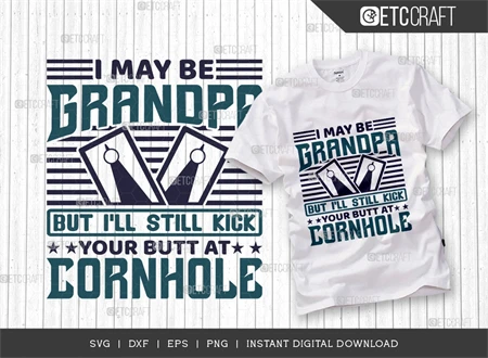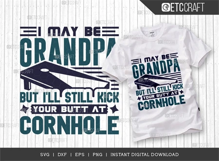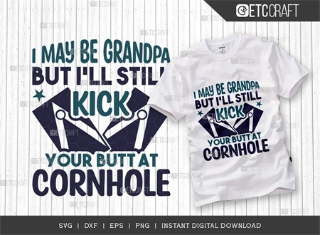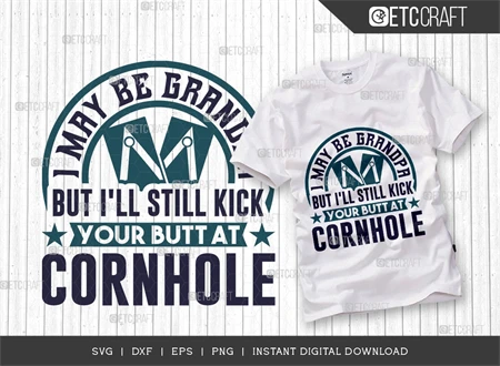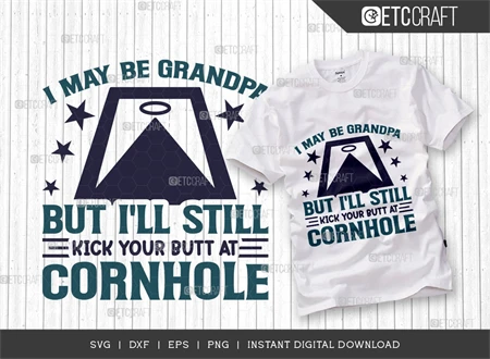 Elevate your cornhole game and celebrate Grandpa's competitive spirit with the "I May Be Grandpa But I'll Still Kick Your Butt At Cornhole SVG Bundle." Get your hands on this fun and versatile design today!