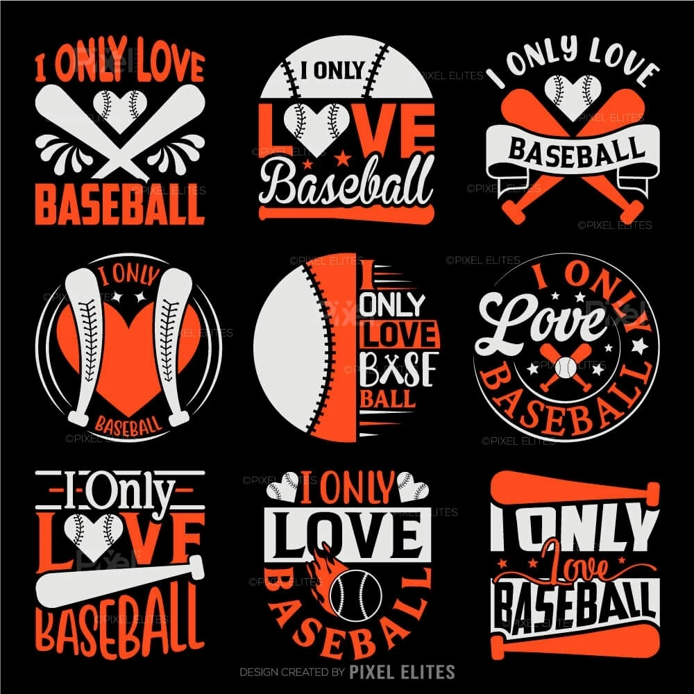 # I Only Love Baseball SVG Cut Files T-Shirt Design, Baseball Quotes, Player Gift Cricut & Vinyl Decals PNG, DXF, SVG