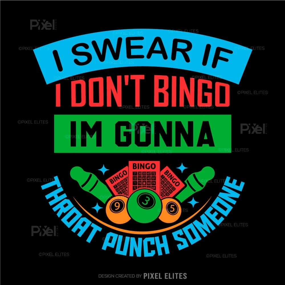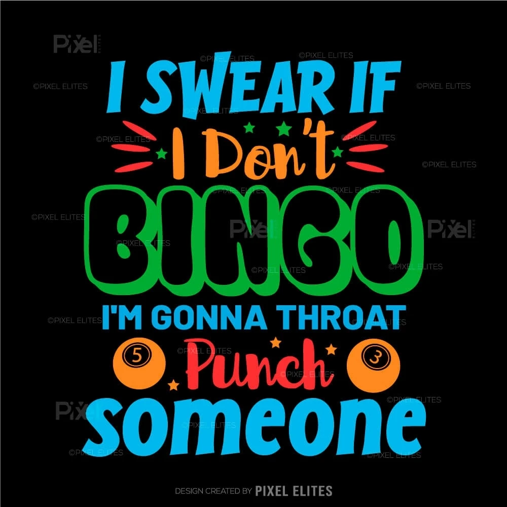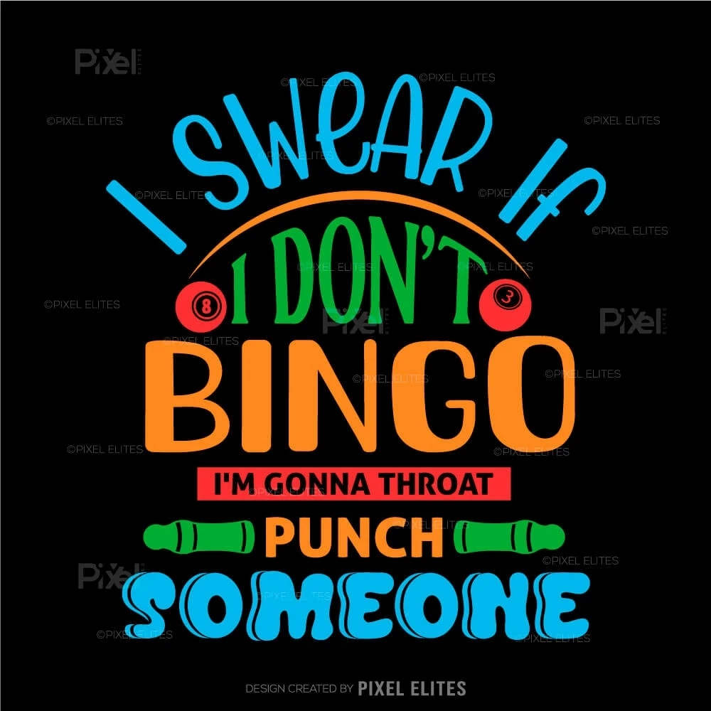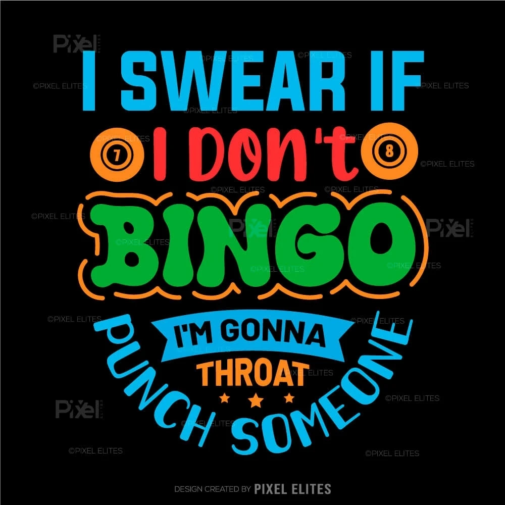 Unleash your competitive spirit with our I Swear If I Don't, Bingo I'm Gonna Throat Someone SVG Cut File! This fun and cheeky design is perfect for bingo lovers who appreciate a good laugh while expressing their excitement for the game. Ideal for crafting DIY T-shirts, this design makes an unforgettable statement thats sure to resonate with fellow bingo enthusiasts.