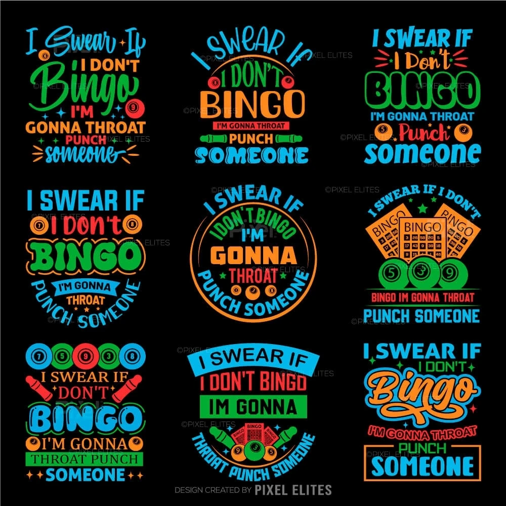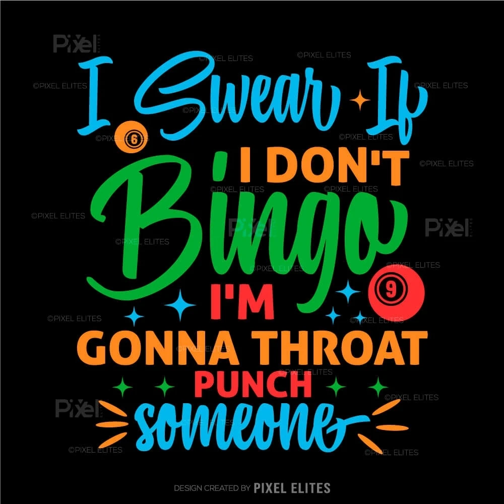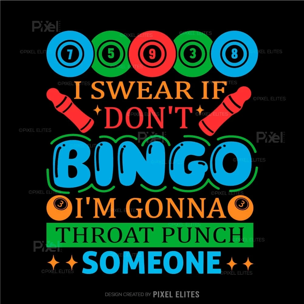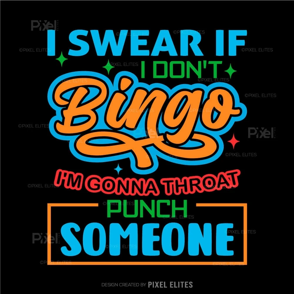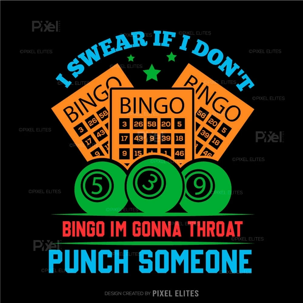 Unleash your competitive spirit with our I Swear If I Don't, Bingo I'm Gonna Throat Someone SVG Cut File! This fun and cheeky design is perfect for bingo lovers who appreciate a good laugh while expressing their excitement for the game. Ideal for crafting DIY T-shirts, this design makes an unforgettable statement thats sure to resonate with fellow bingo enthusiasts.