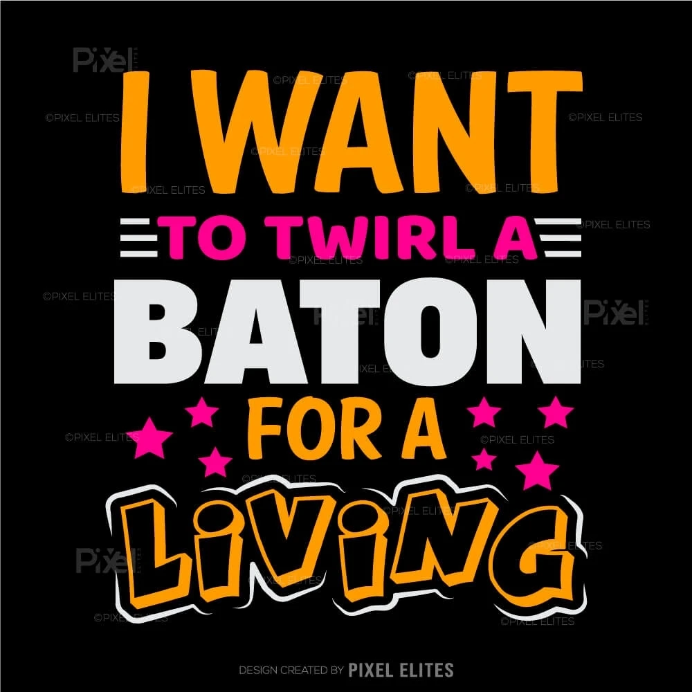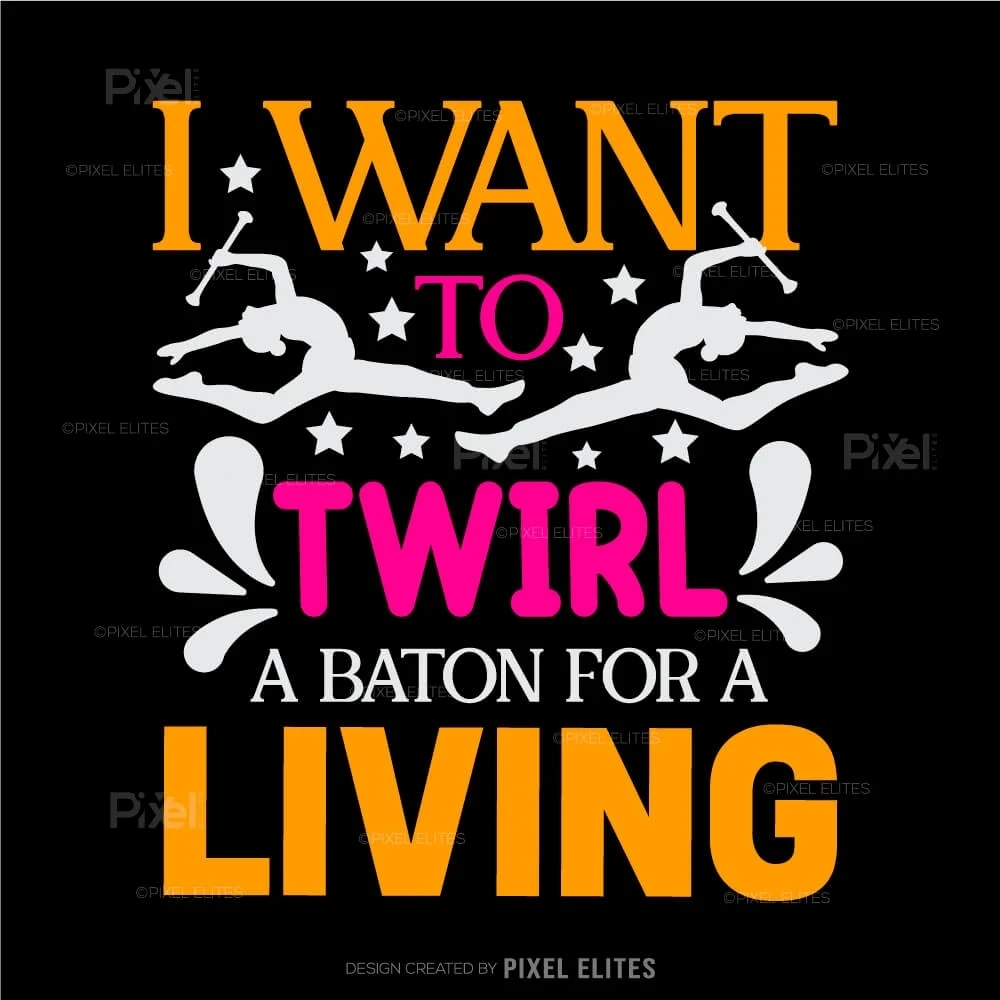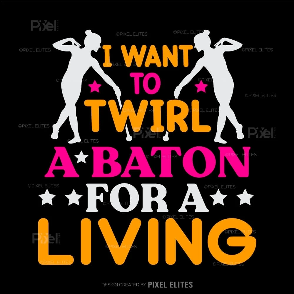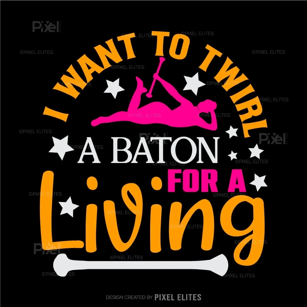 Product Description: I Want To Twirl A Baton For A Living - SVG Cut Files for T-Shirt Design