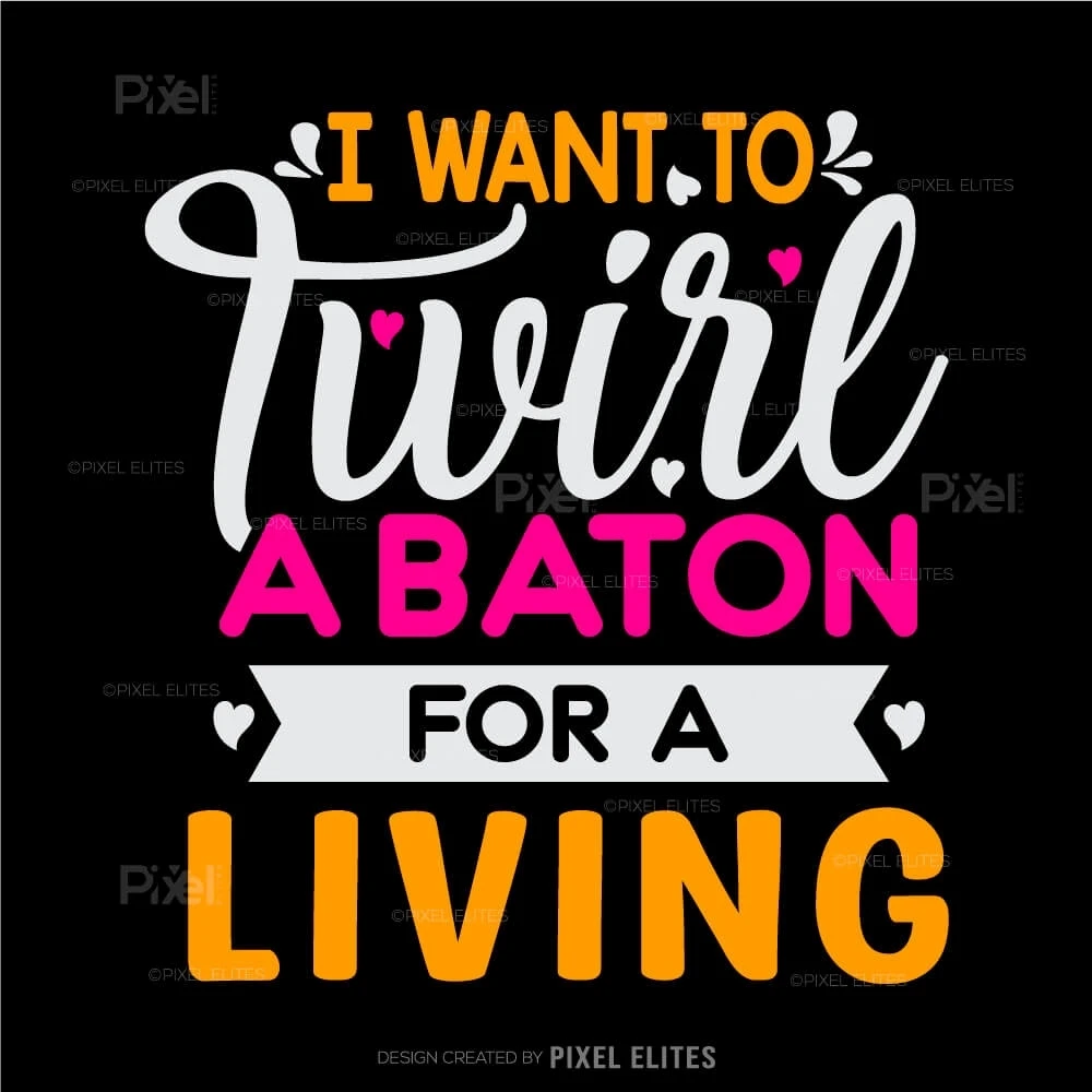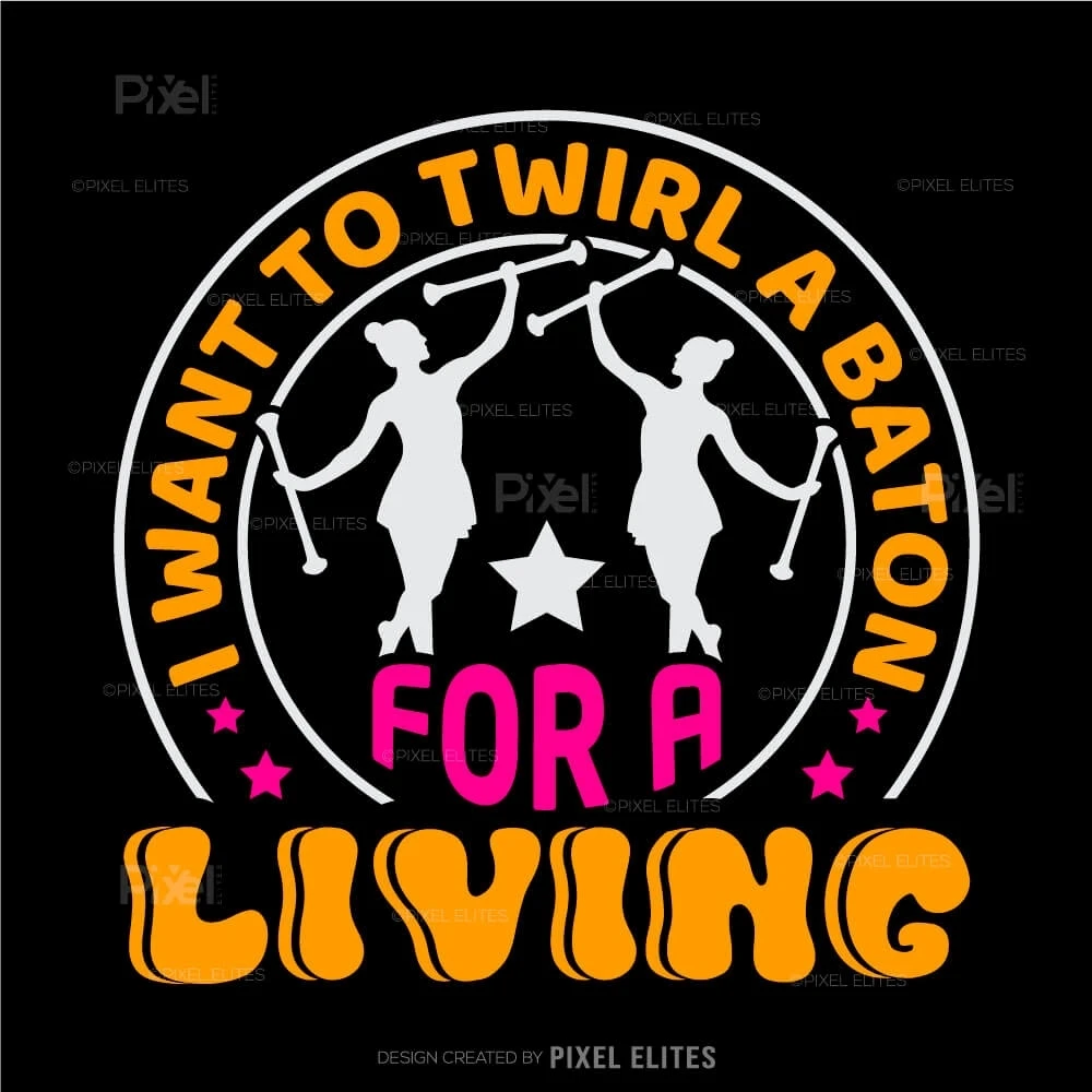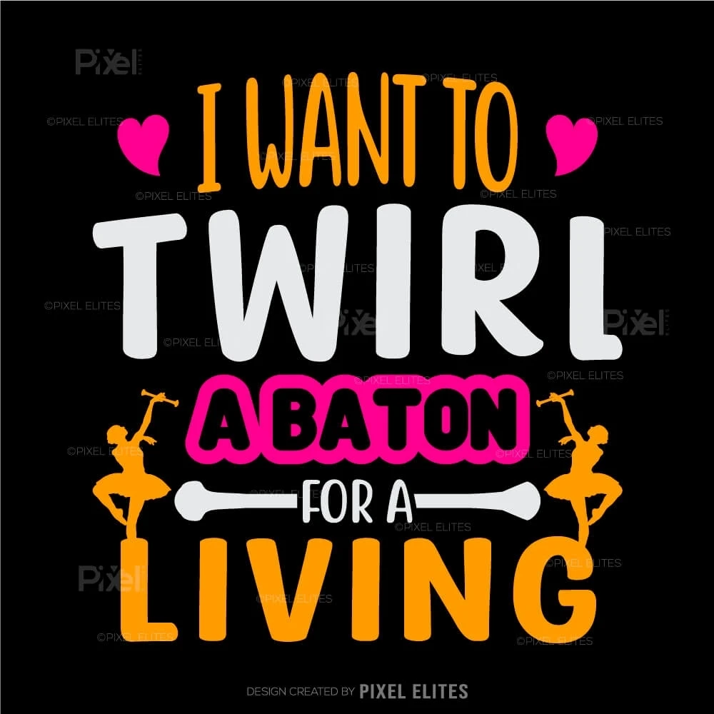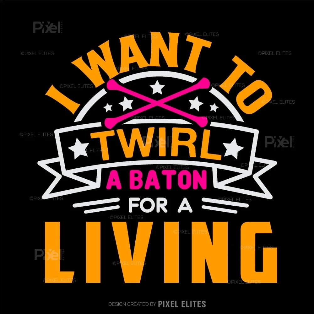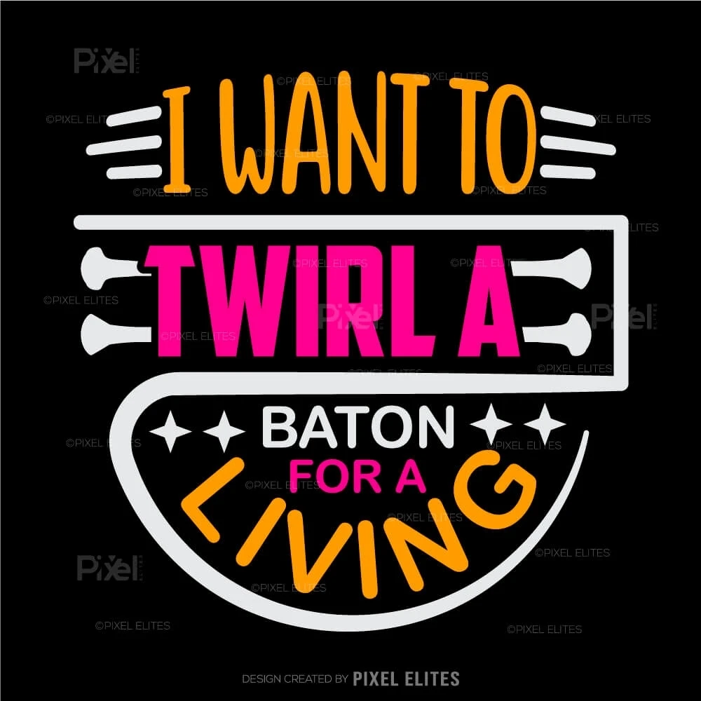 Product Description: I Want To Twirl A Baton For A Living - SVG Cut Files for T-Shirt Design