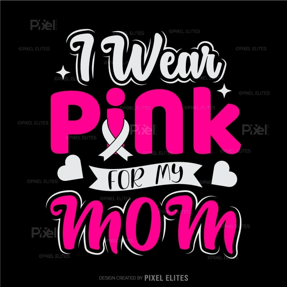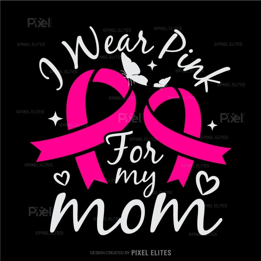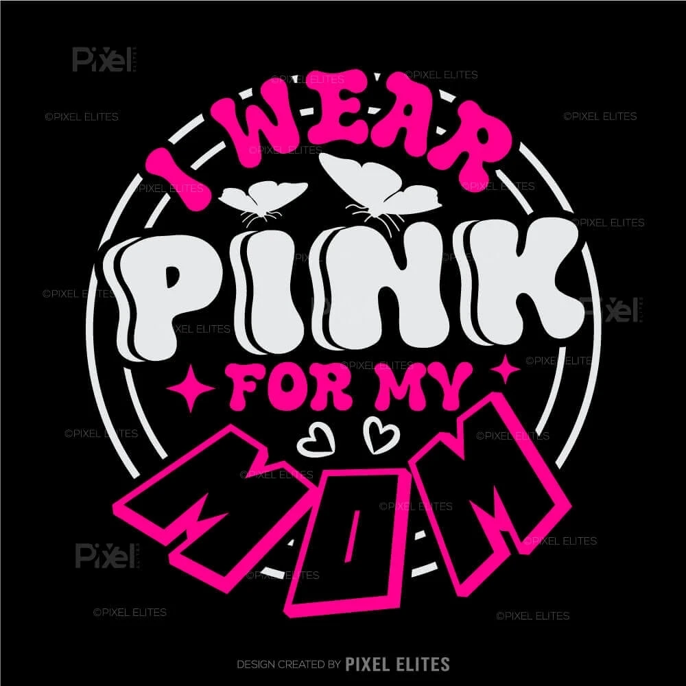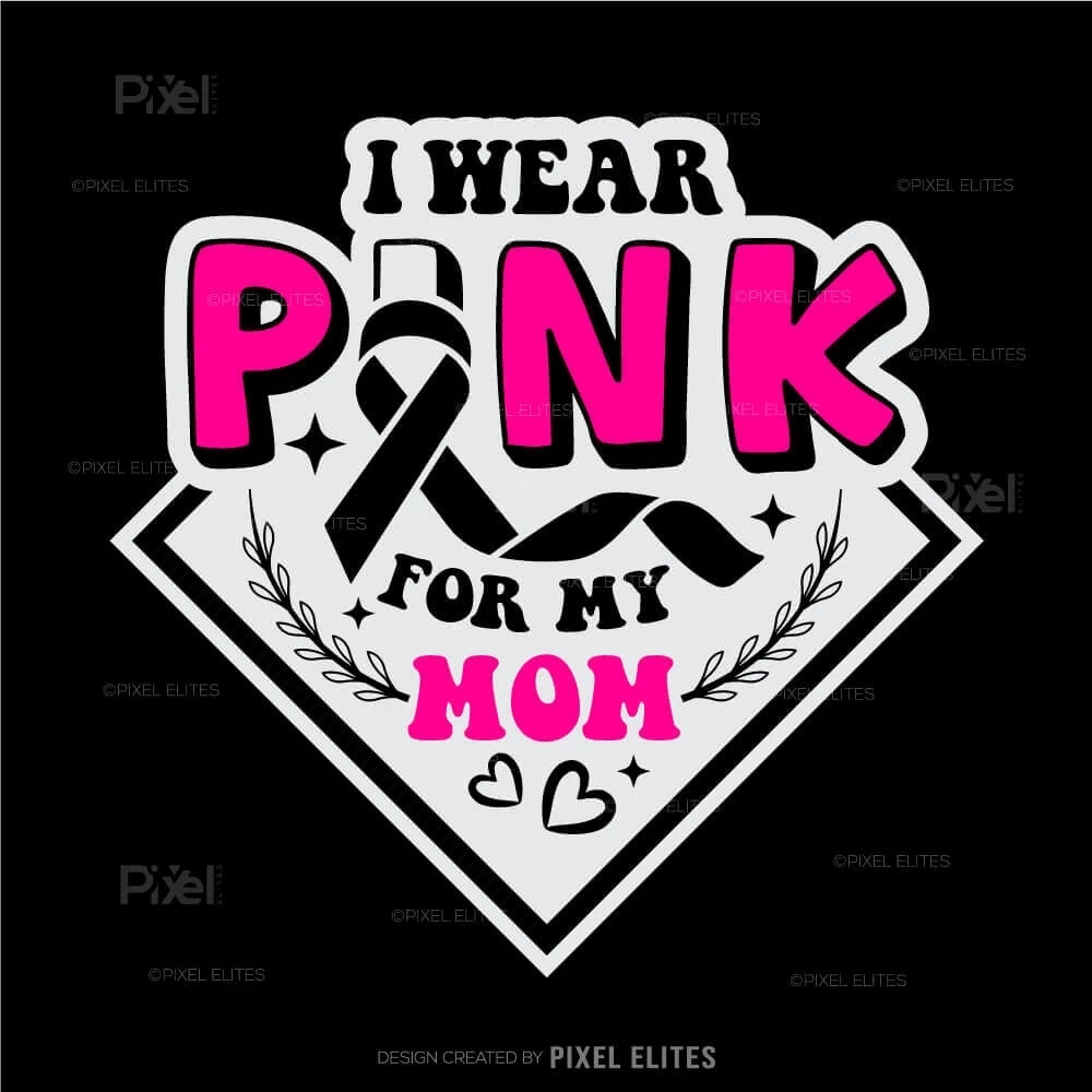 I Wear Pink for My Mom - SVG Cut Files for T-Shirt Design Pink Ribbon & Breast Cancer Survivor Vinyl Decal Together We Fight