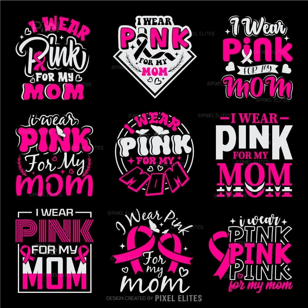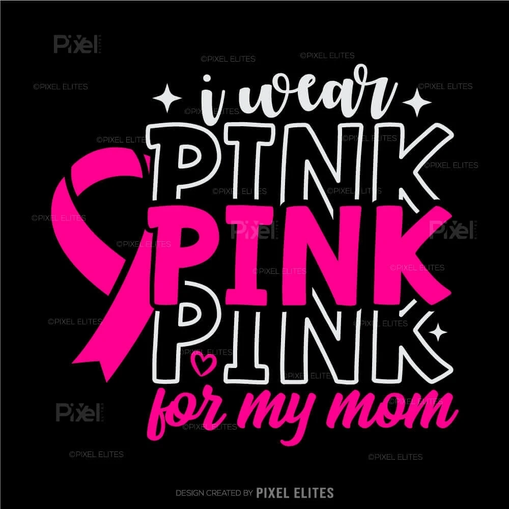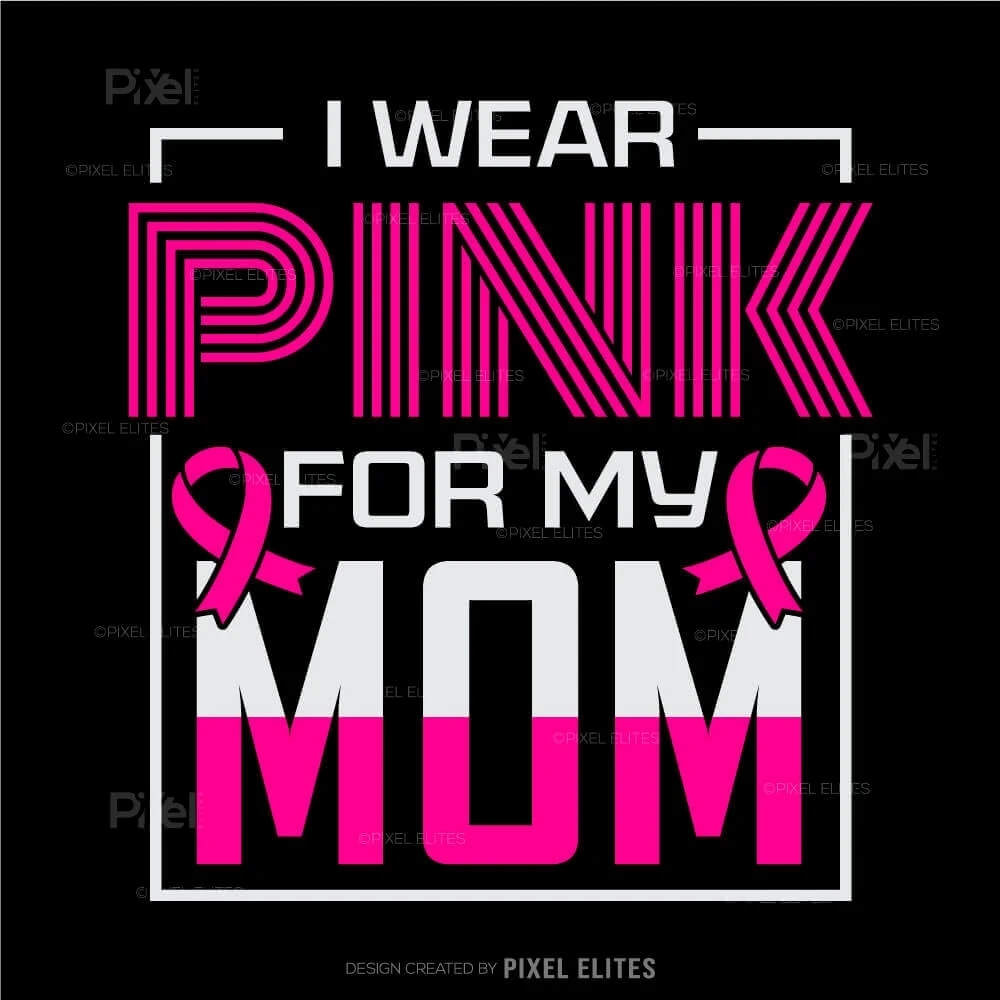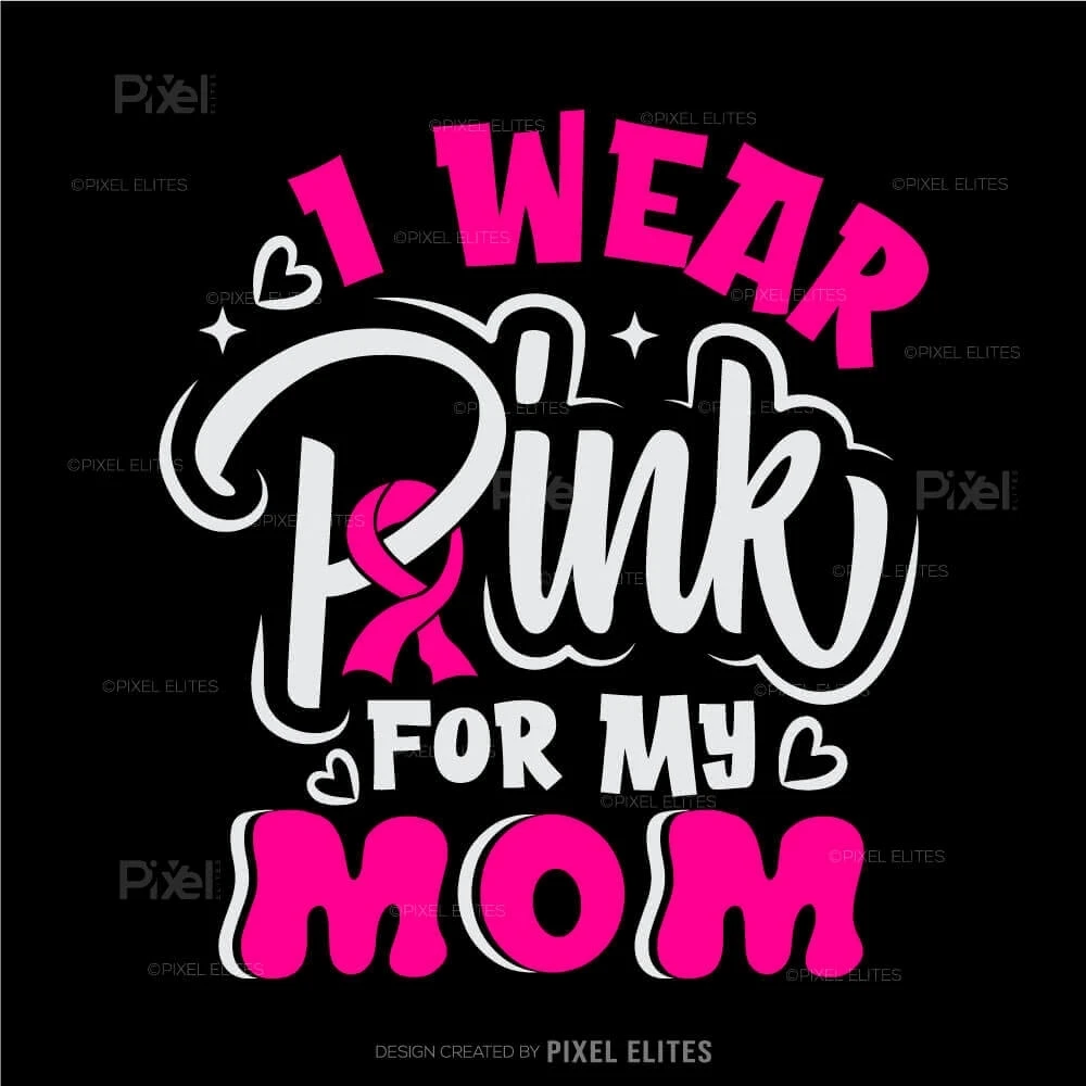I Wear Pink for My Mom - SVG Cut Files for T-Shirt Design Pink Ribbon & Breast Cancer Survivor Vinyl Decal Together We Fight