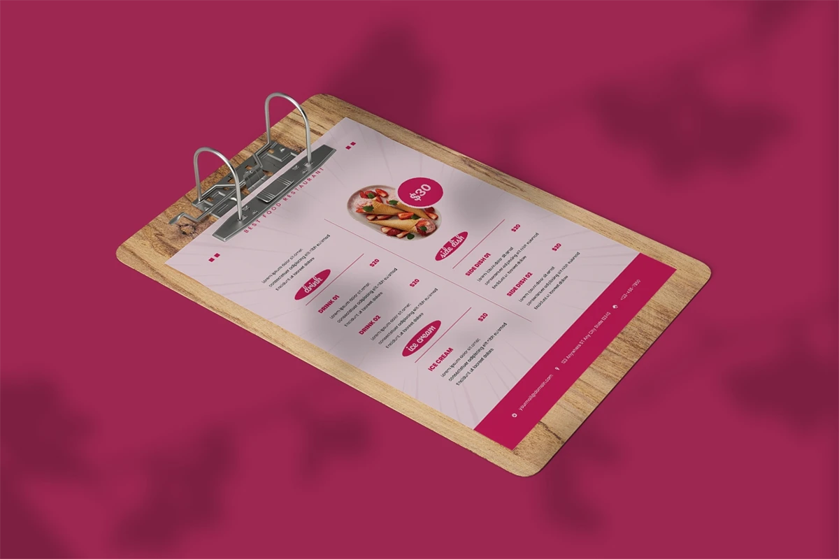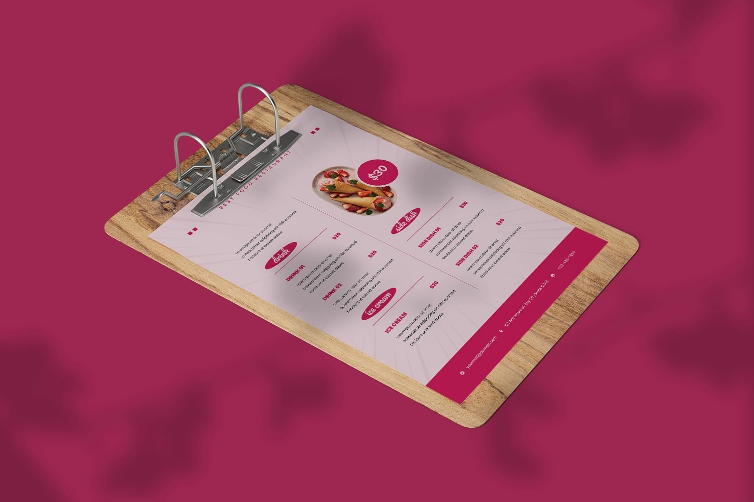 Menu Restaurant Template is a menu template for people who sell, business, or run a food-related business. The layout makes it easy to find the menu you want. Too many choices can make customers feel overwhelmed, so its better to limit the number of choices, colors, and other design elements so that customers can easily scan and order items.