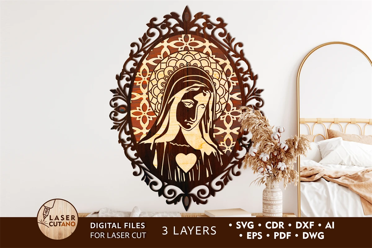 Deva Maria Laser Cut File Religious Svg and Jesus Cross Laser Cut File. It is laser cut files are digital files that are used to create designs or patterns using a laser cutter machine!