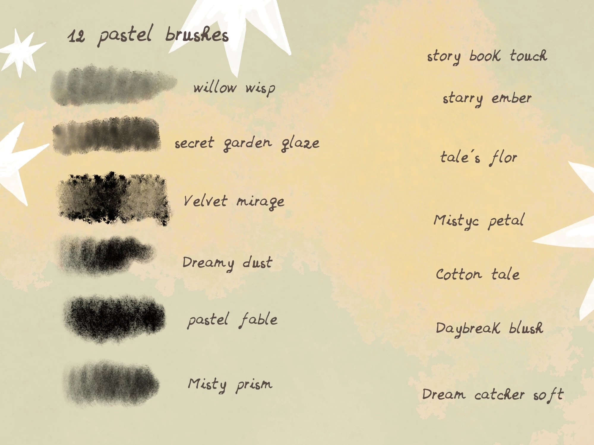 Step into a world of whimsical wonders and untold stories with this enchanting brush set. Featuring 12 ethereal watercolor brushes that capture the delicate flow of dreams, 13 soft pastel brushes perfect for creating velvety hues and gentle textures, and 5 watercolor stamps inspired by drops of magic, this set invites you to illustrate tales that never were. Let your creativity bloom across every canvas each brushstroke a chapter in your own fairytale.