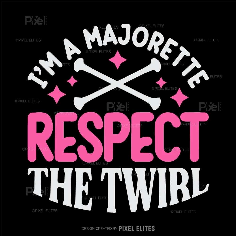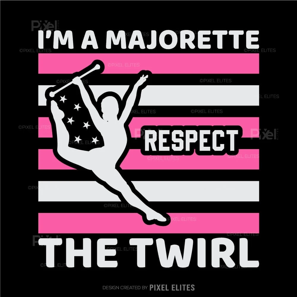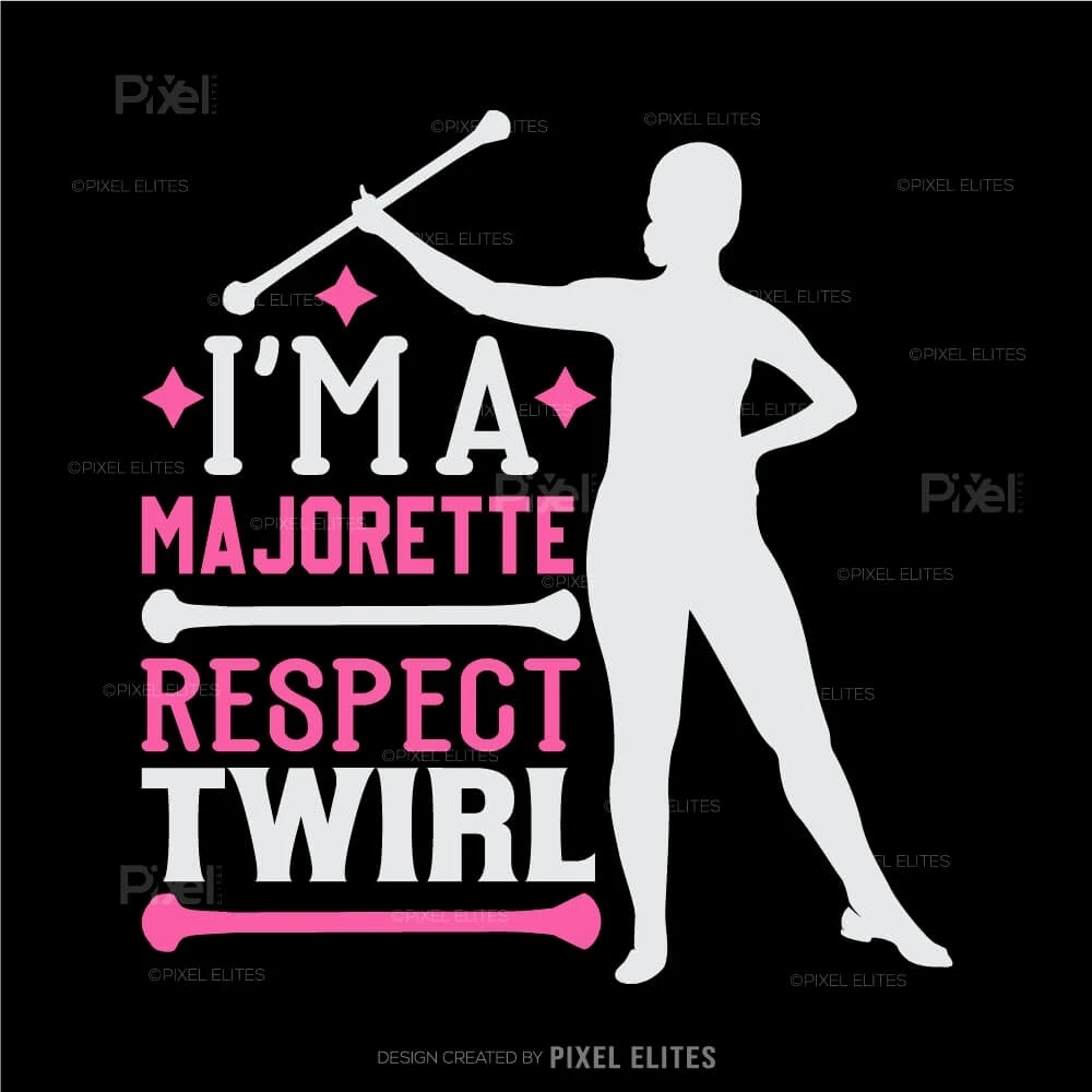 Product Description: I'm A Majorette, Respect SVG Cut Files - Baton Twirls Quote T-Shirt Design