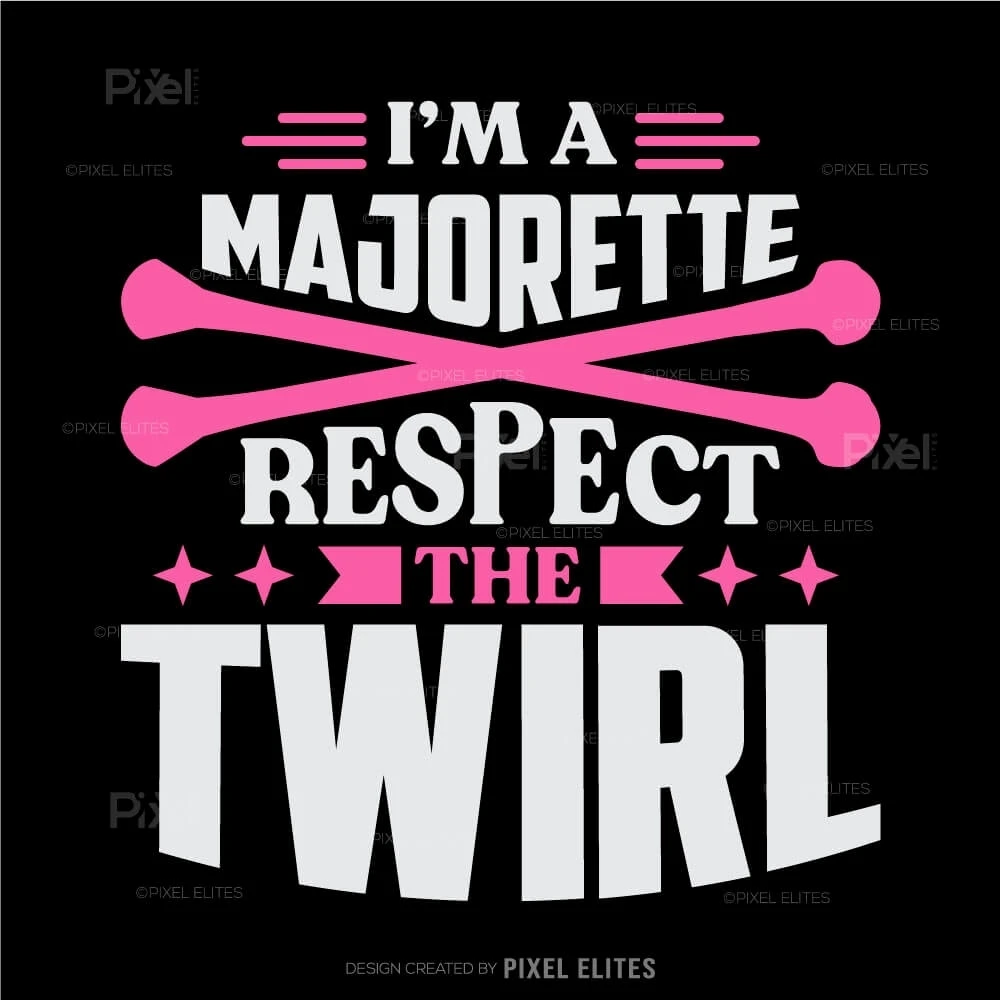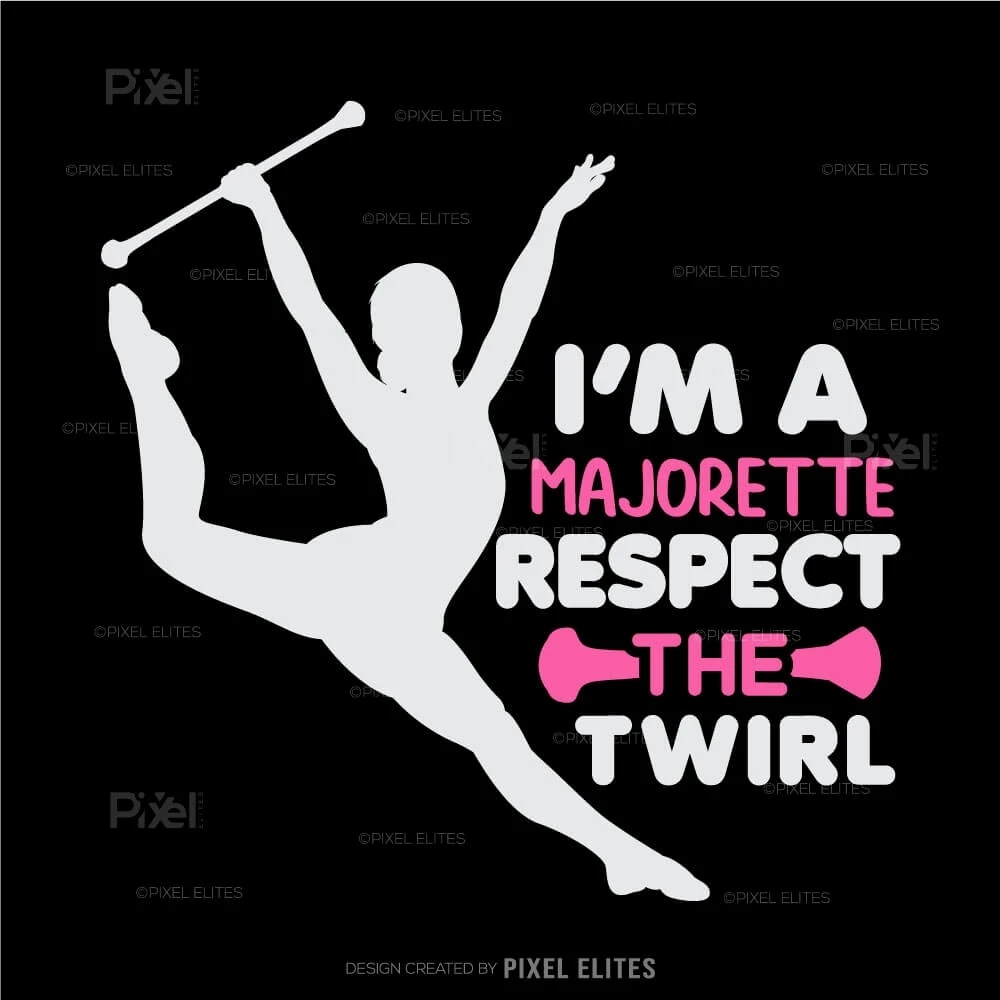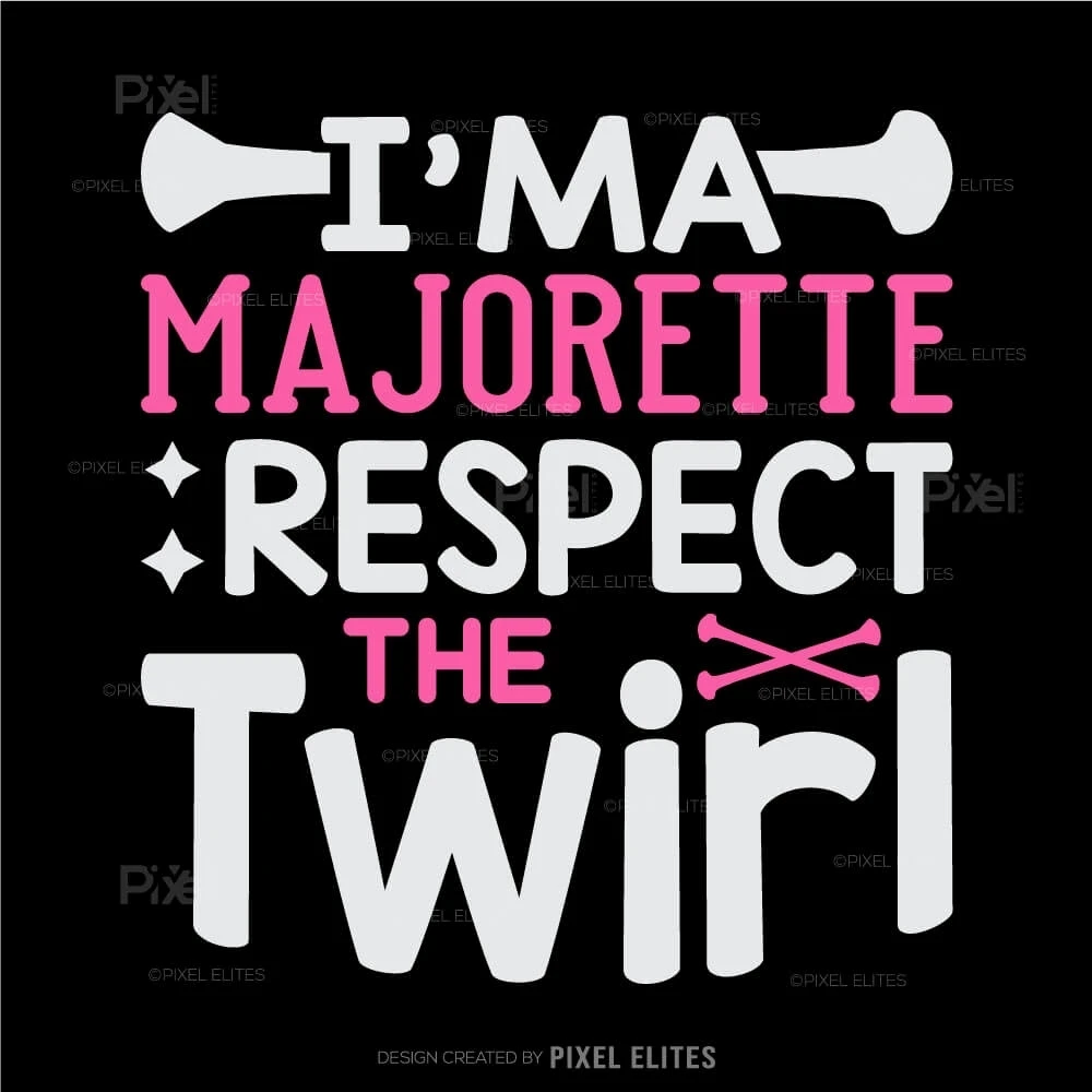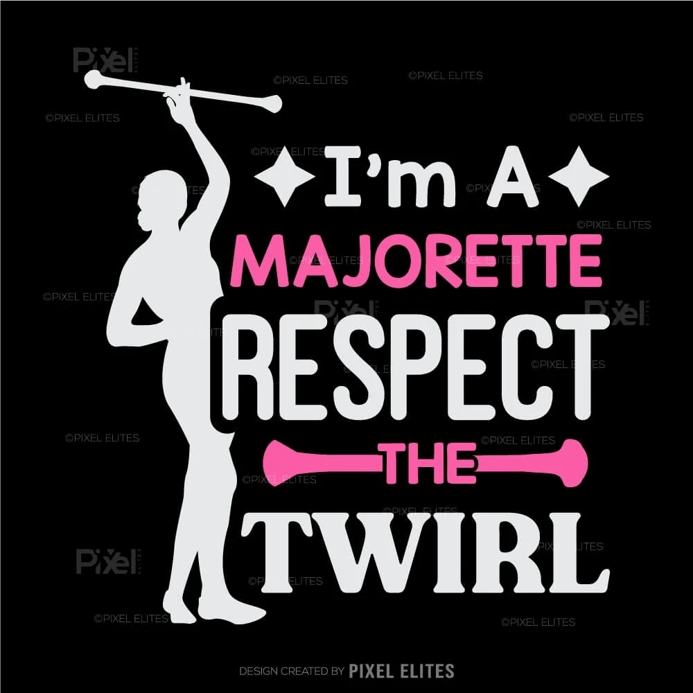 Product Description: I'm A Majorette, Respect SVG Cut Files - Baton Twirls Quote T-Shirt Design