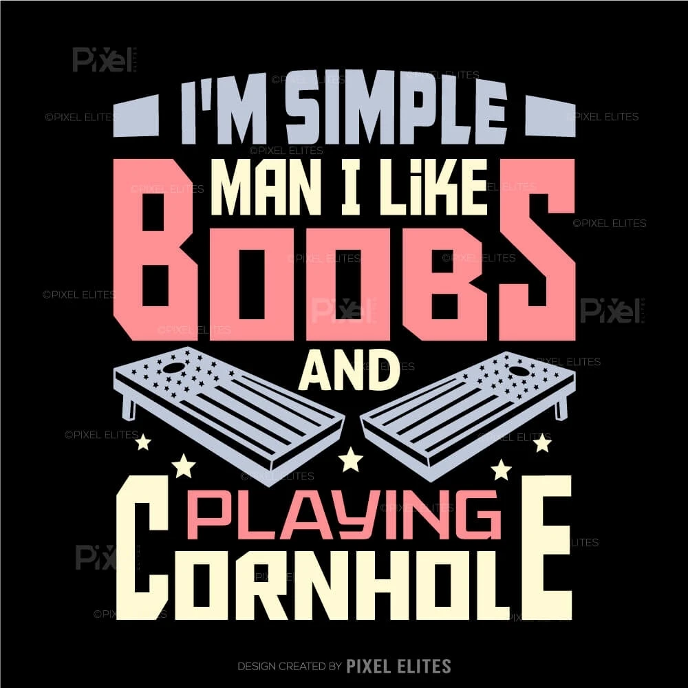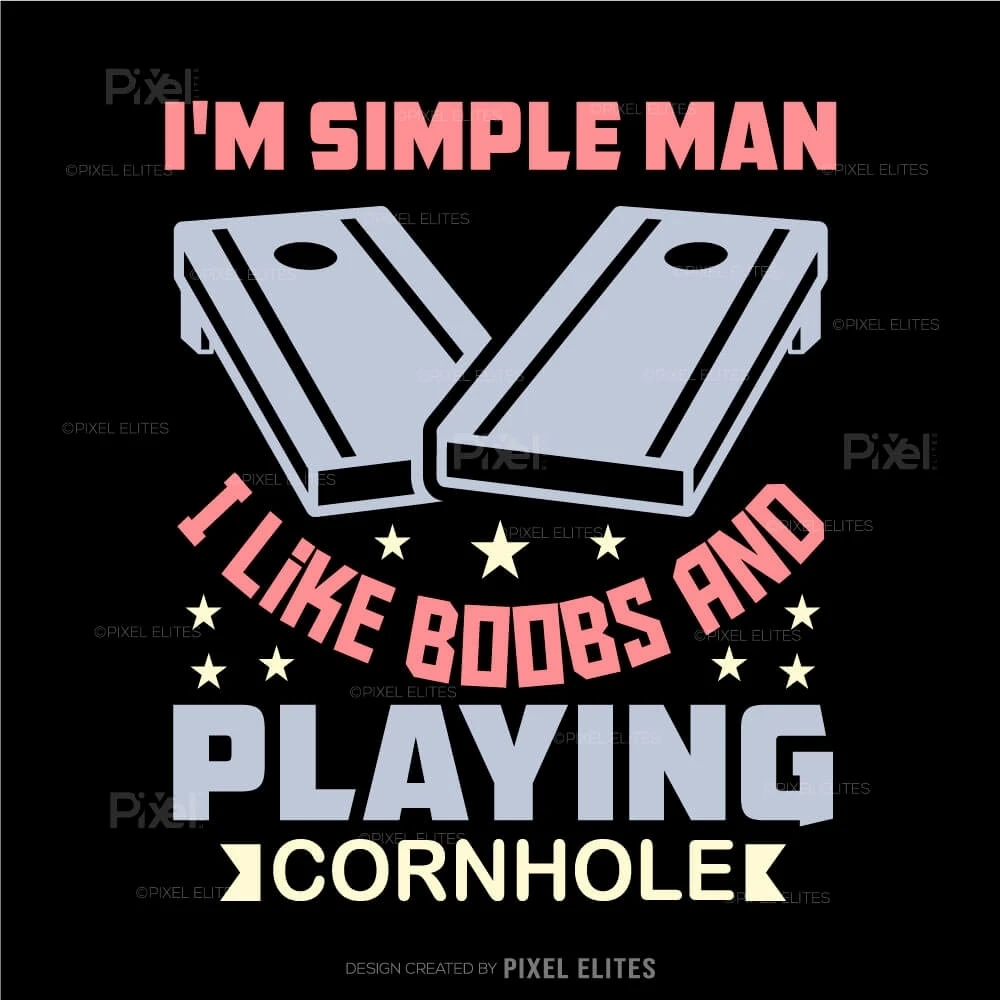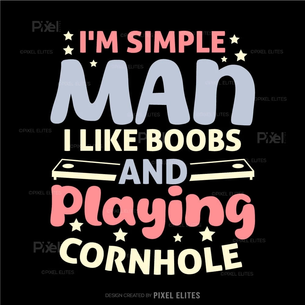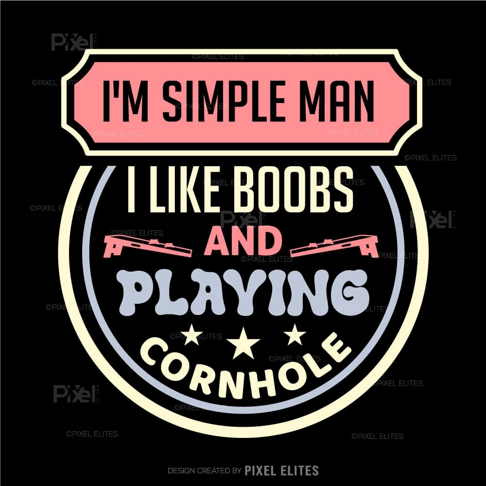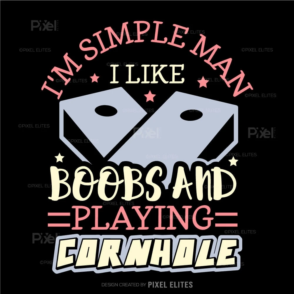 Show off your playful personality with the I'm a Simple Man I Like Boobs and Playing Cornhole SVG Cut Files design! This bold and humorous SVG is perfect for cornhole enthusiasts who enjoy the game and arent afraid to have fun with their style. Ideal for creating custom t-shirts, decals, mugs, and more, this design brings a cheeky vibe to any craft project.