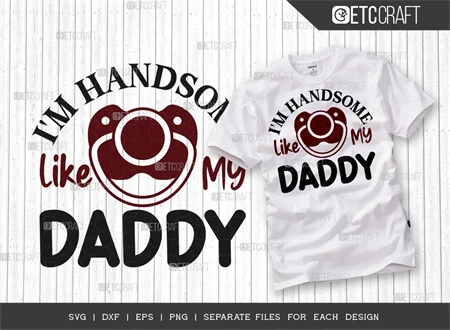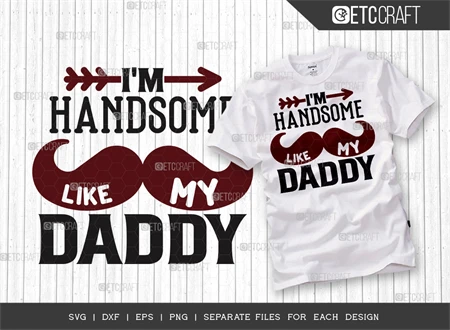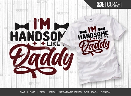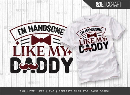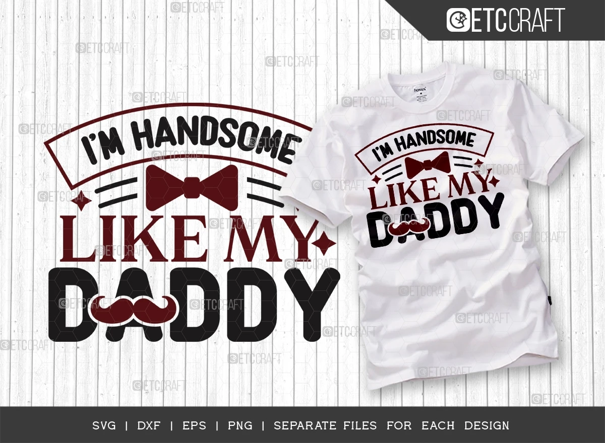 "I'm Handsome Like My Daddy" SVG Bundle: A collection of adorable t-shirt designs celebrating the father-son bond.