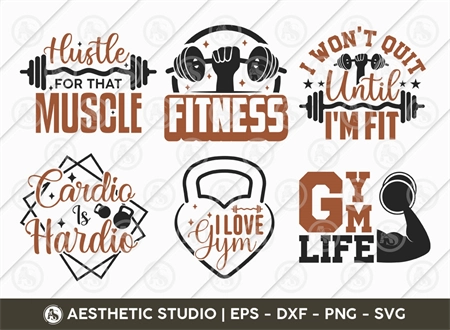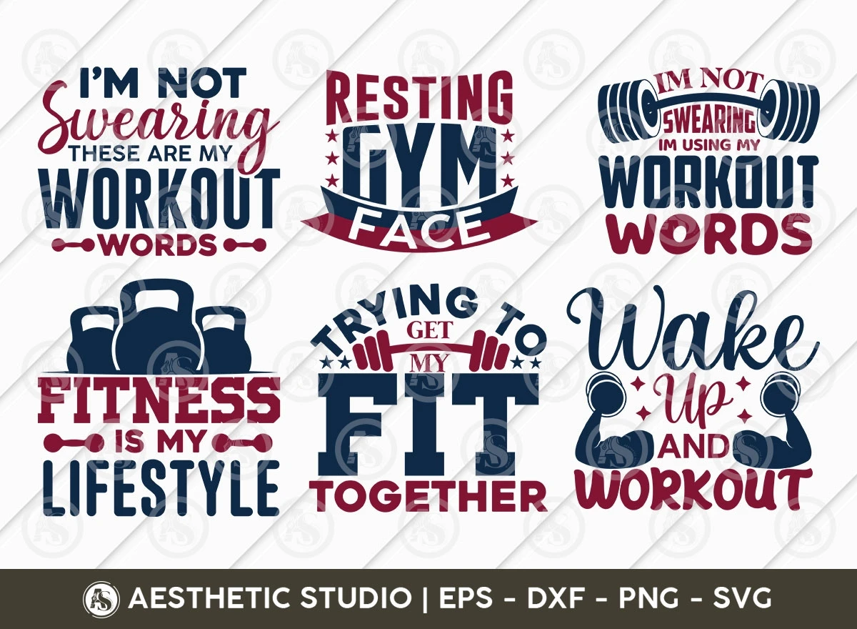 Diverse Designs: The "Gym Bundle" includes an array of fitness-themed designs, from motivational quotes to workout-inspired graphics. With this collection, you have the flexibility to choose the perfect design for your gym apparel or accessories.