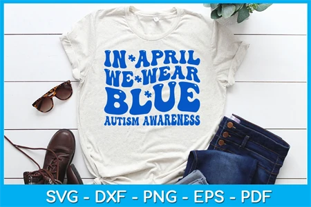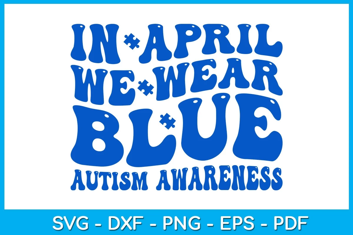In April We Wear Blue Autism Awareness SVG Printable Files.