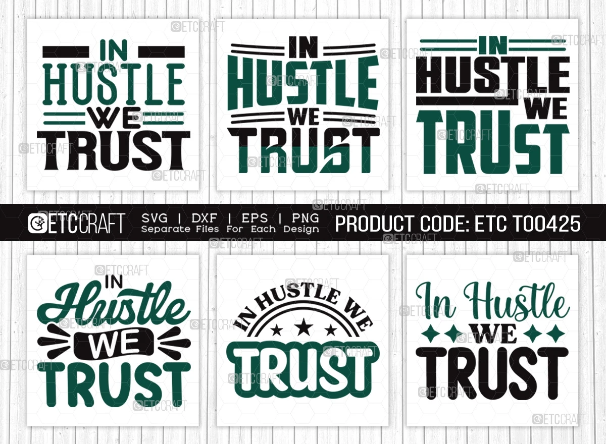 "In Hustle We Trust SVG Bundle" the perfect addition to your collection of top-level design assets! Packed with creativity, motivation, and style, this bundle offers an array of captivating SVG files suitable for all the go-getters out there.