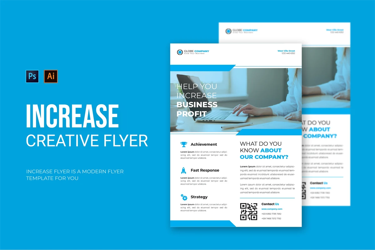 Increase Business - Flyer. This Flyer template is designed for your company's business needs. very clean and elegant, and also easily edited and adjusted to your liking
