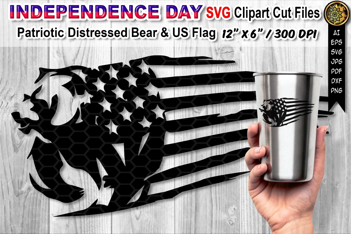 SVG Cut Files Distressed US Flag with Animal Theme (Bear) for Independence Day, Patriotic Digital Download for your creative DIY projects.