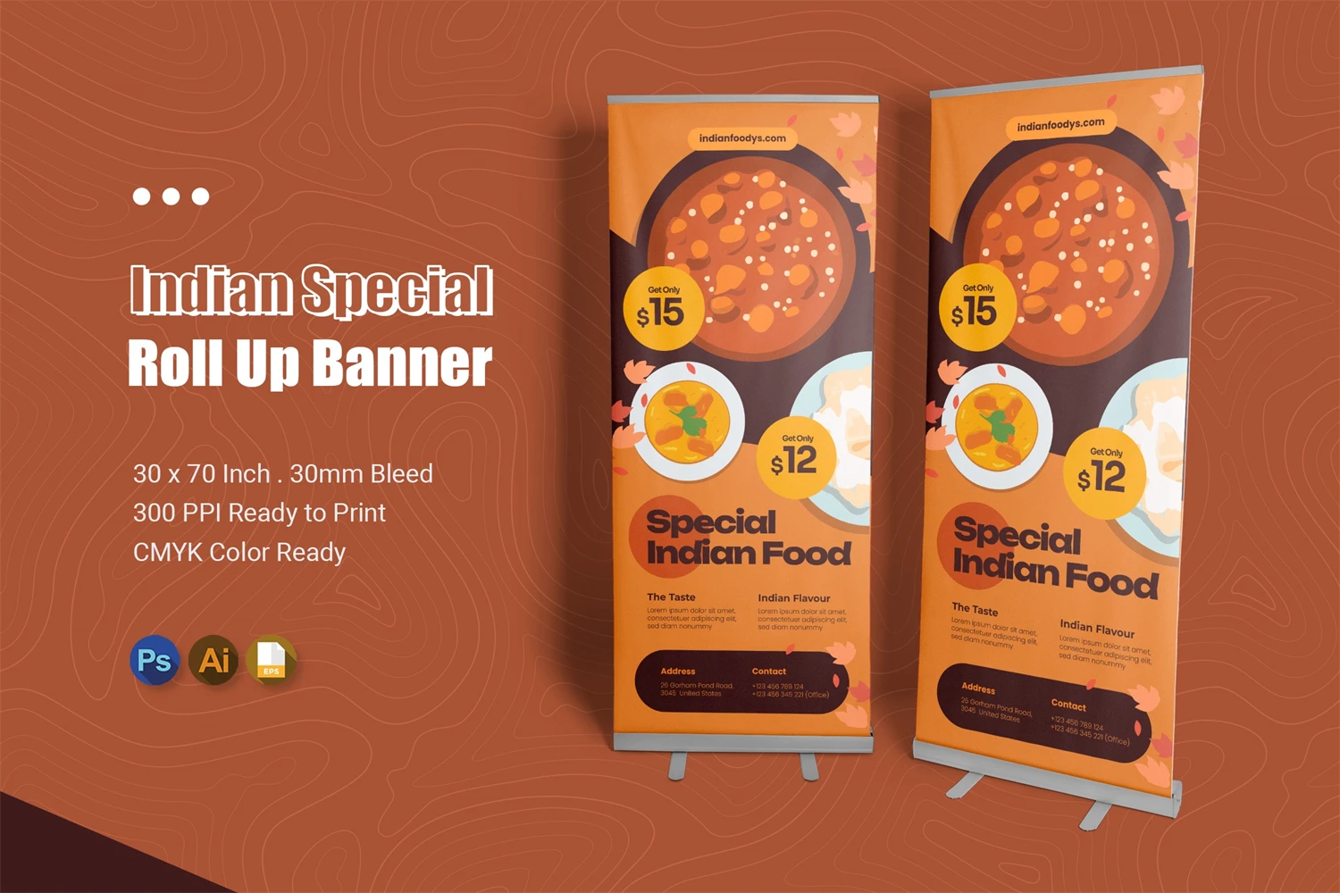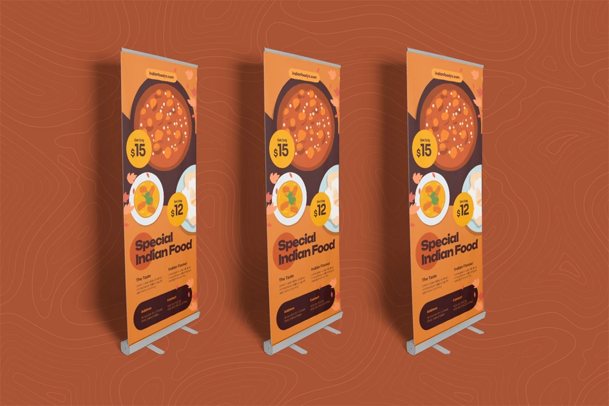 The versatile roll up banner template is very easy to use, modify and customize. Use this roll up banner and make the most of your campaign!