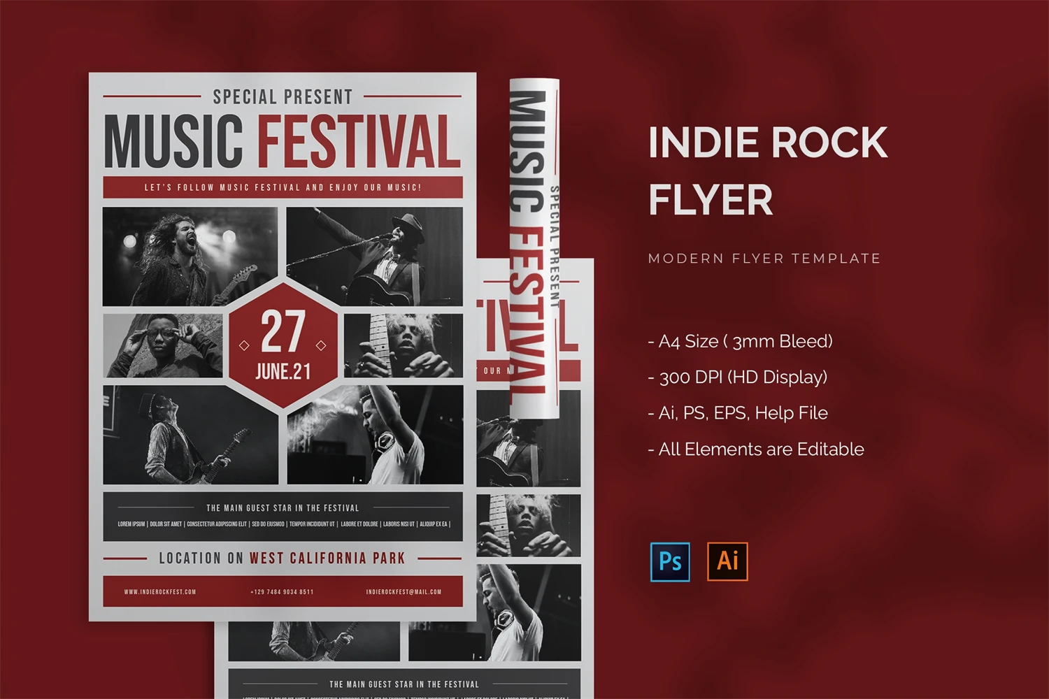 Indie Music - Flyer. This Flyer template is designed for your company's business needs. very clean and elegant, and also easily edited and adjusted to your liking