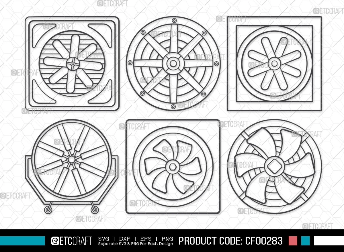 Add an industrial touch to your creative endeavors with our Industrial Fan Outline Ventilation Exhaust Fan SVG Cut File Bundle. It's the perfect resource for anyone looking to infuse their projects with a touch of industrial flair. Let your imagination soar, and start crafting with confidence today!