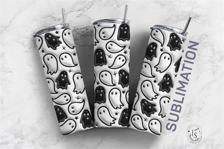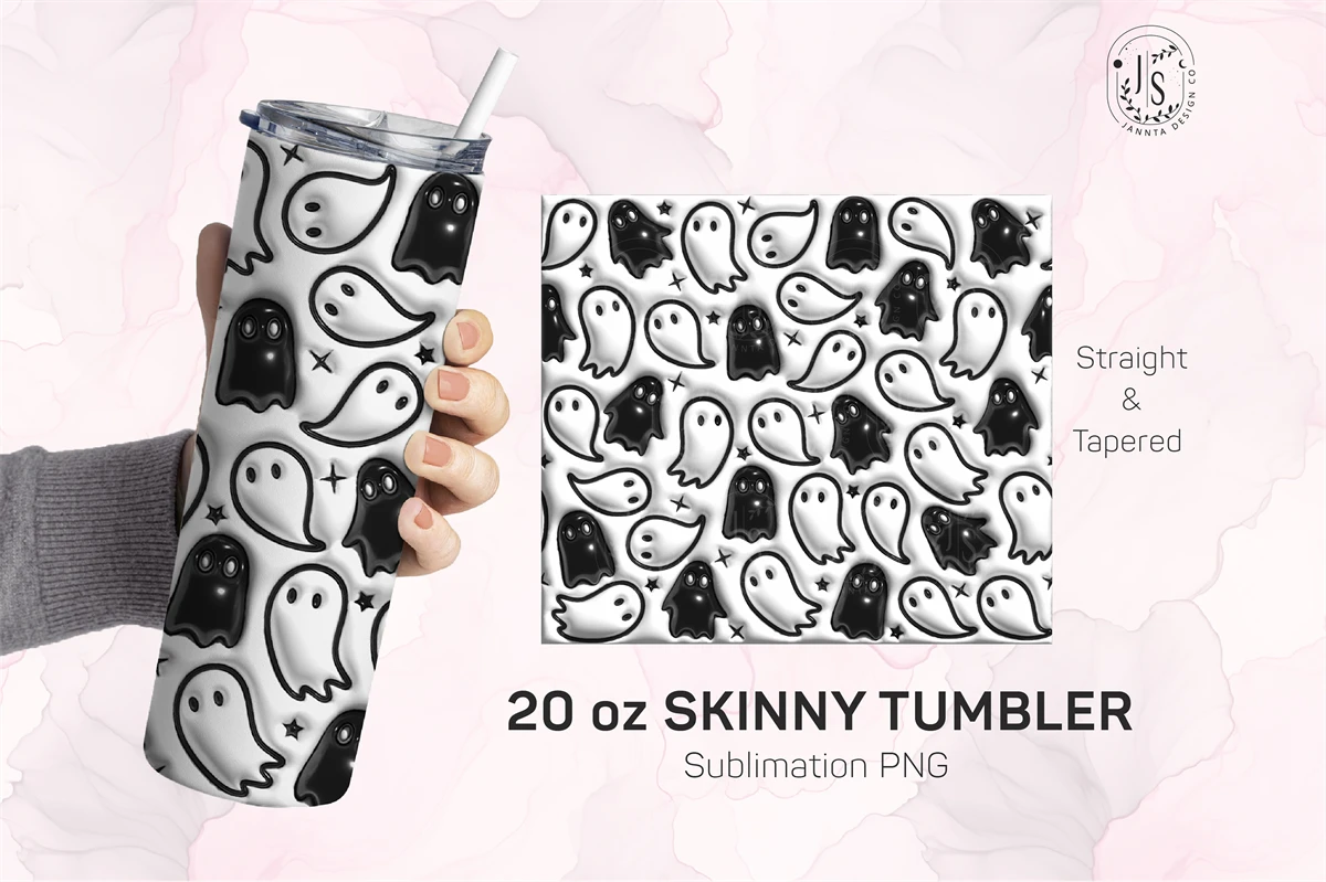 Inflated Bubble Halloween Ghost Tumbler Wrap, 3D Tumbler Design, Skinny Tumbler 20oz, Sublimation Digital Download Puff Tumbler Design, 3D Skinny Tumbler 20oz, Digital Download PNG Template, Sublimation PNG Template