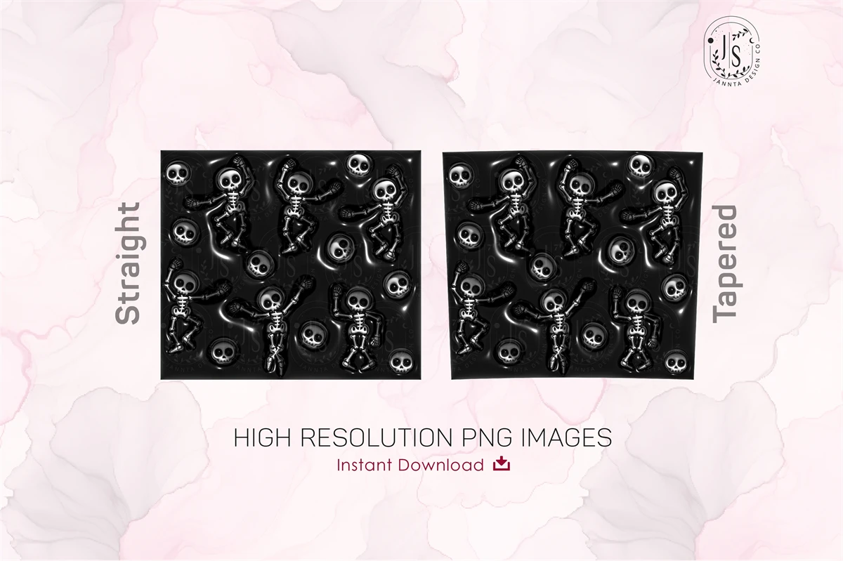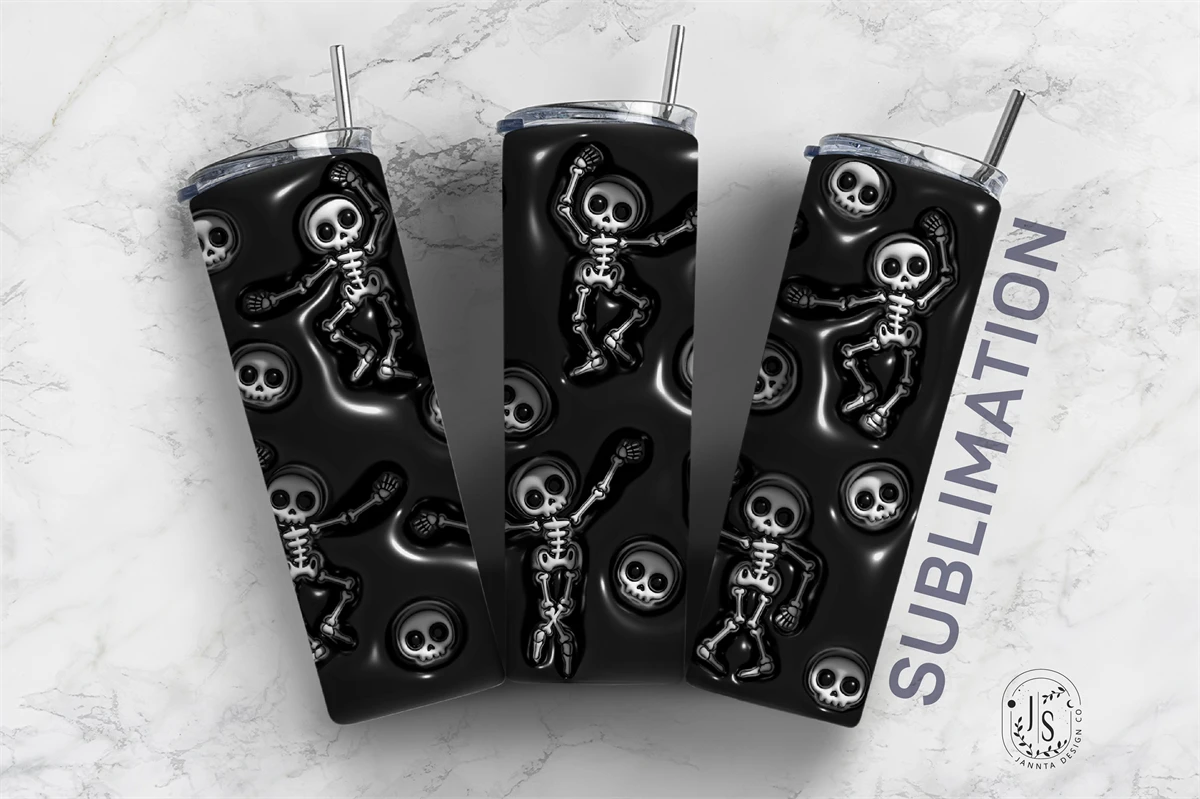 Inflated Bubble Dancing Skeleton Tumbler Wrap, 3D Halloween Design Skinny Tumbler 20oz, Skeleton Tumbler, Spooky Tumbler, 3D Inflated Puff, Digital Download PNG Template, Sublimation PNG Template
