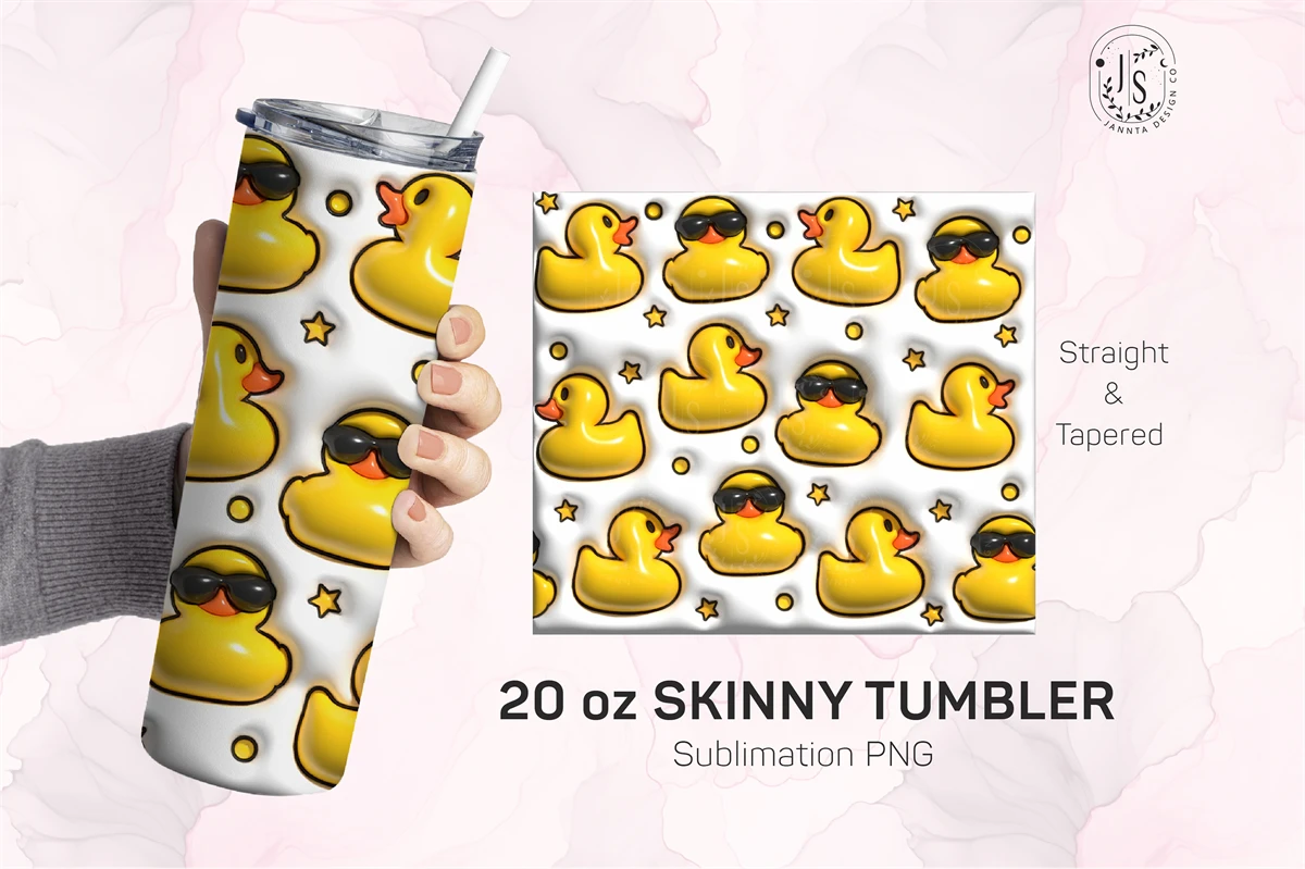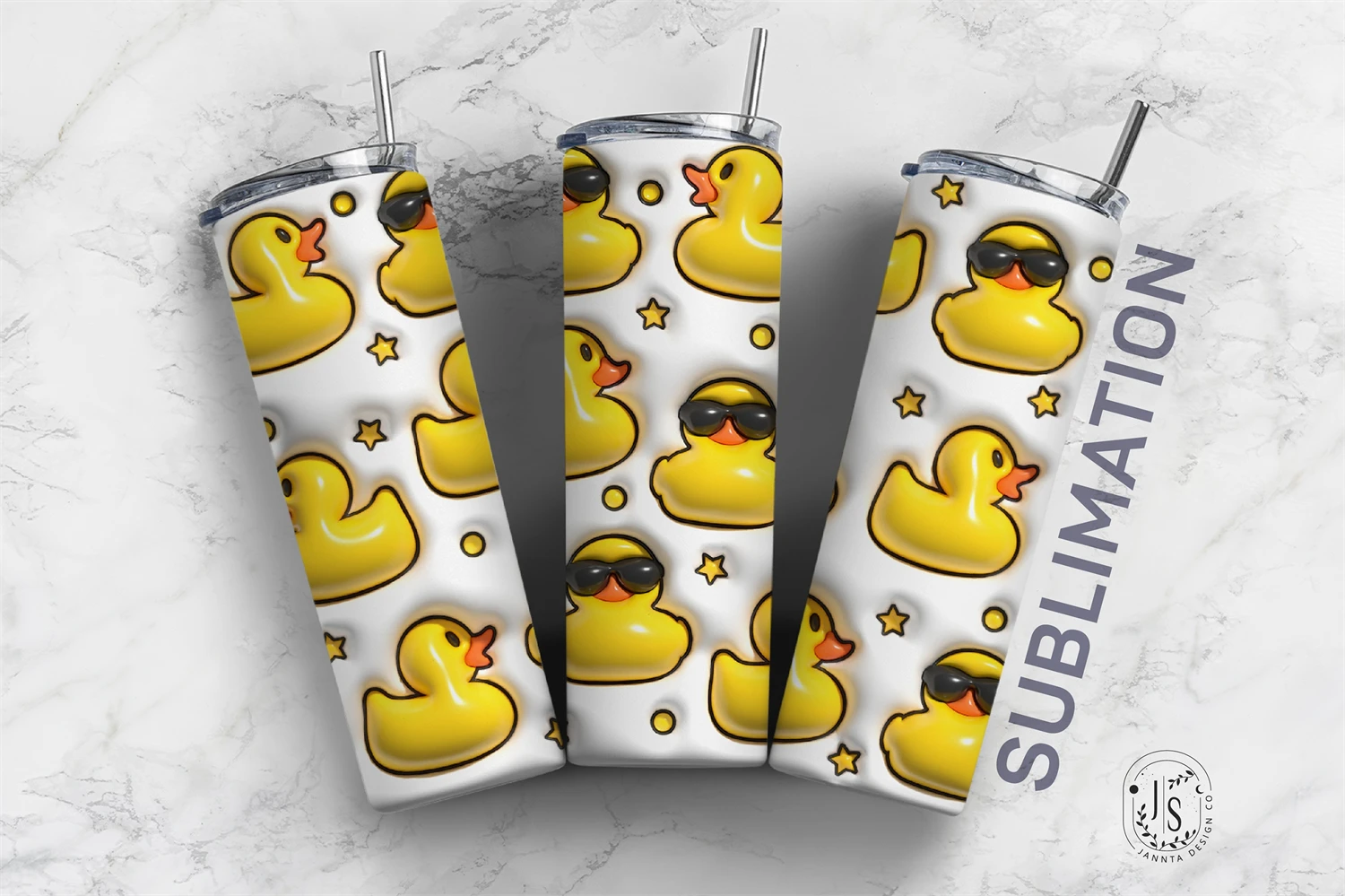 Inflated Bubble Rubber Duck Tumbler Wrap, Modern 3D Design, Playful Yellow Duck Puff Tumbler Design, Sublimation Design, Skinny Tumbler 20oz, Digital Download PNG Template, Sublimation PNG Template