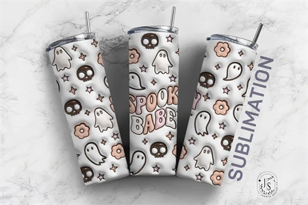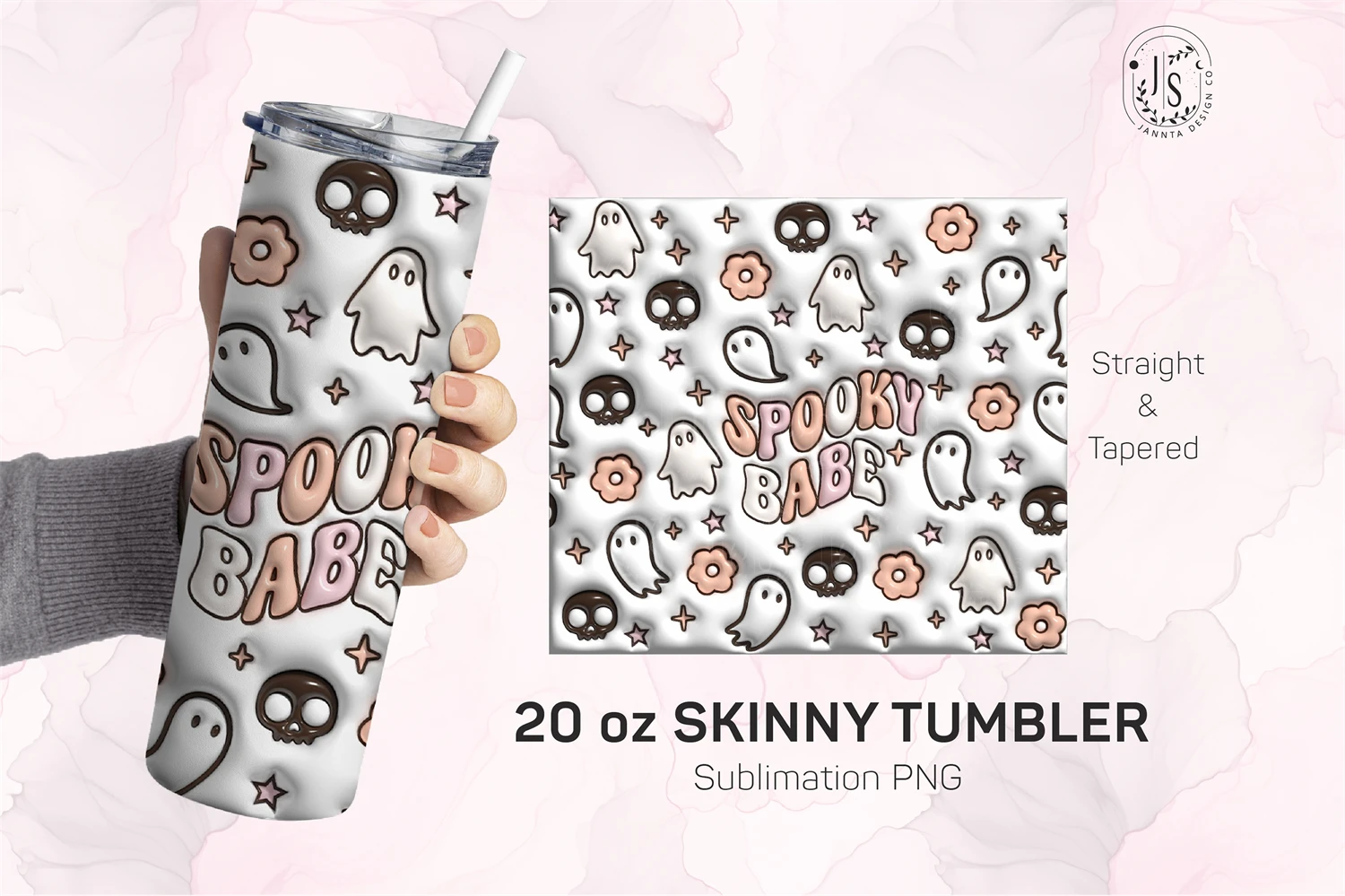 Inflated Bubble Spooky Babe Tumbler Wrap, 3D Skinny Tumbler 20oz, Sublimation Digital Download Puff Tumbler Design, Halloween Tumbler PNG, Halloween Ghost Design, Digital Download PNG Template, Sublimation PNG Template