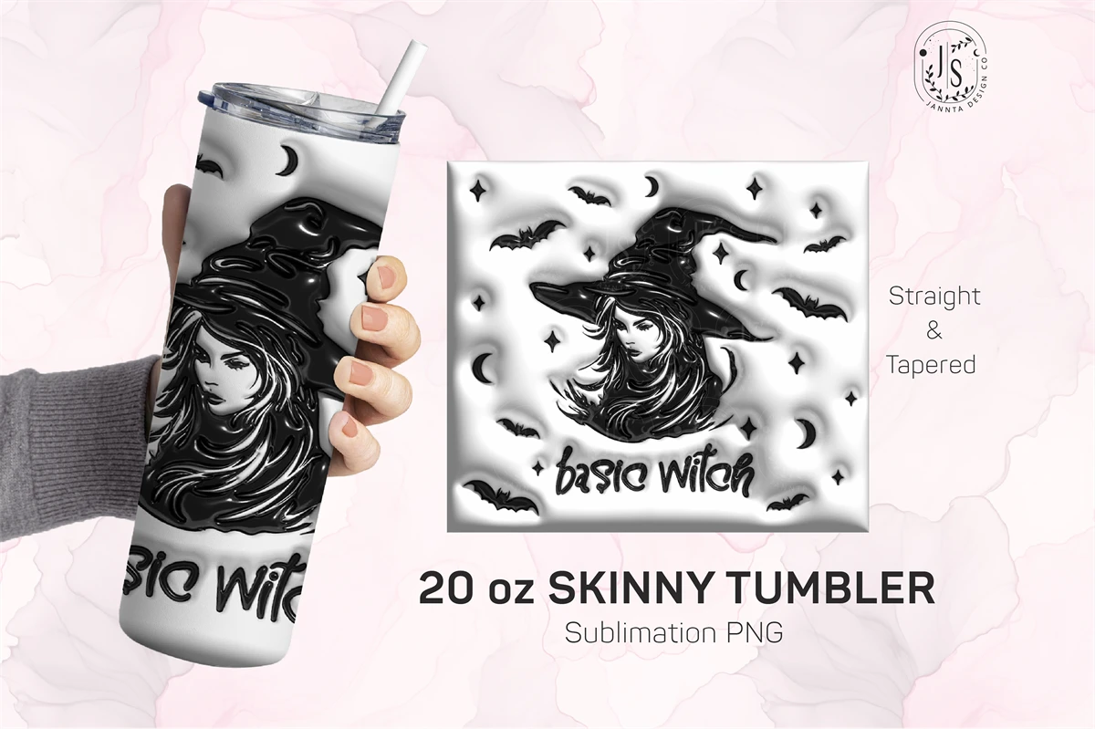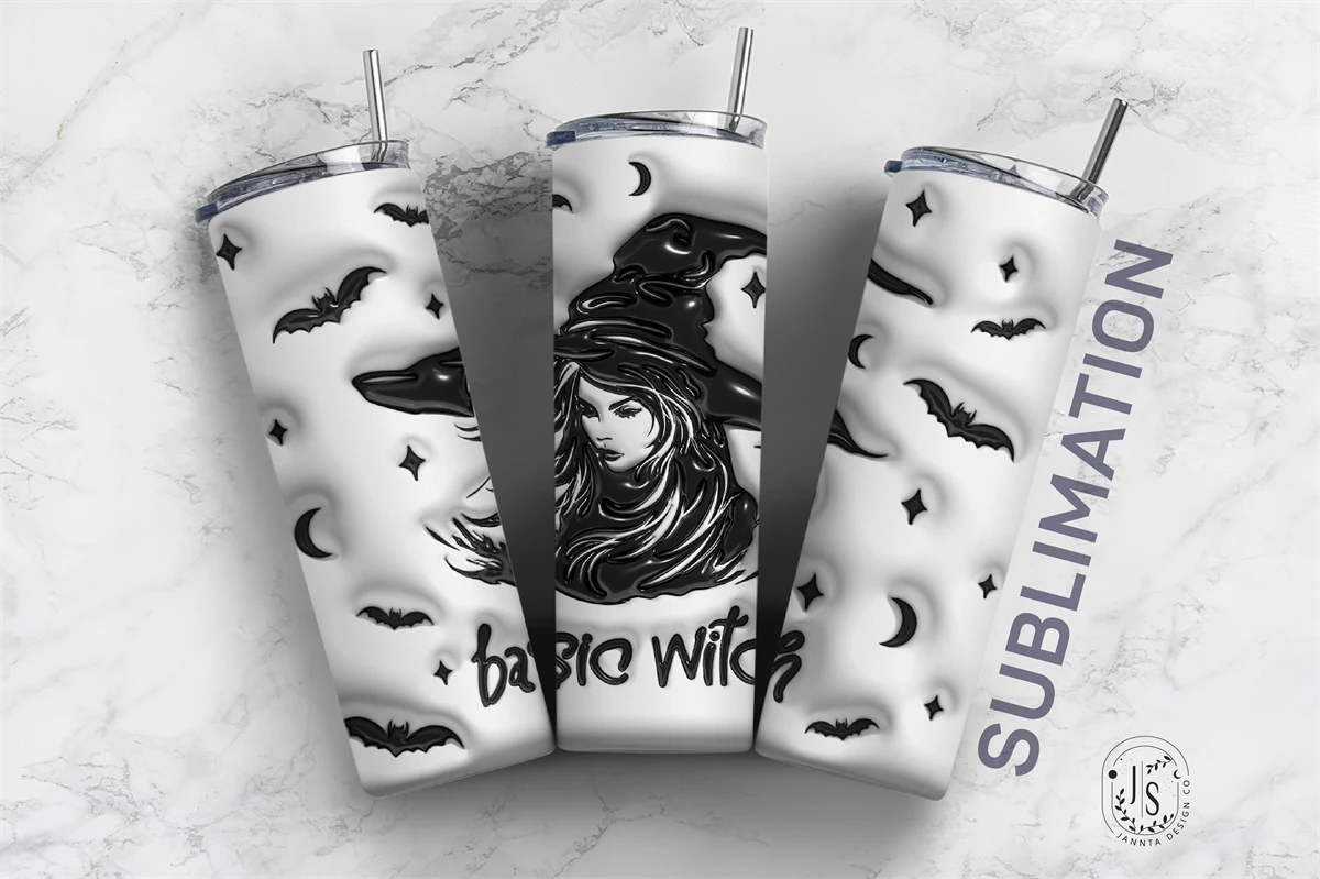 Inflated Bubble Witch Tumbler Wrap, 3D Design Skinny Tumbler 20oz, Sublimation Digital Download Puff Tumbler Halloween Design, Basic Witch tumbler, Digital Download PNG Template, Sublimation PNG Template
